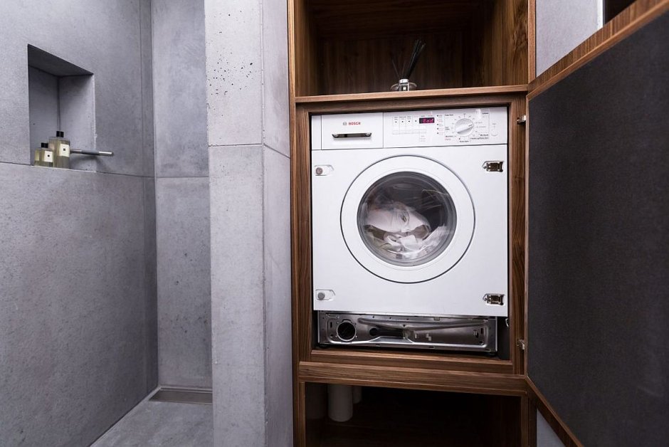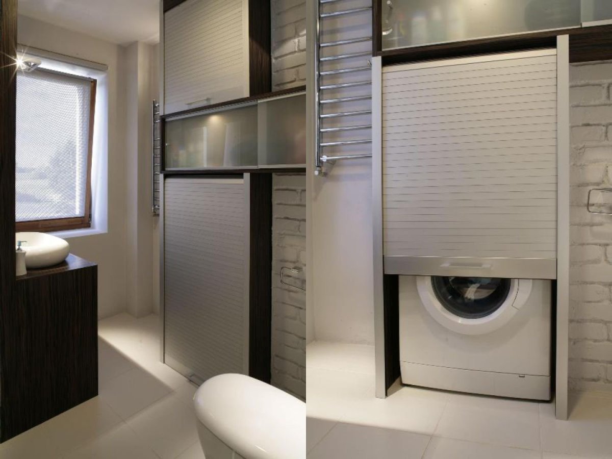 Встроенный шкаф для стиральной машины в ванной