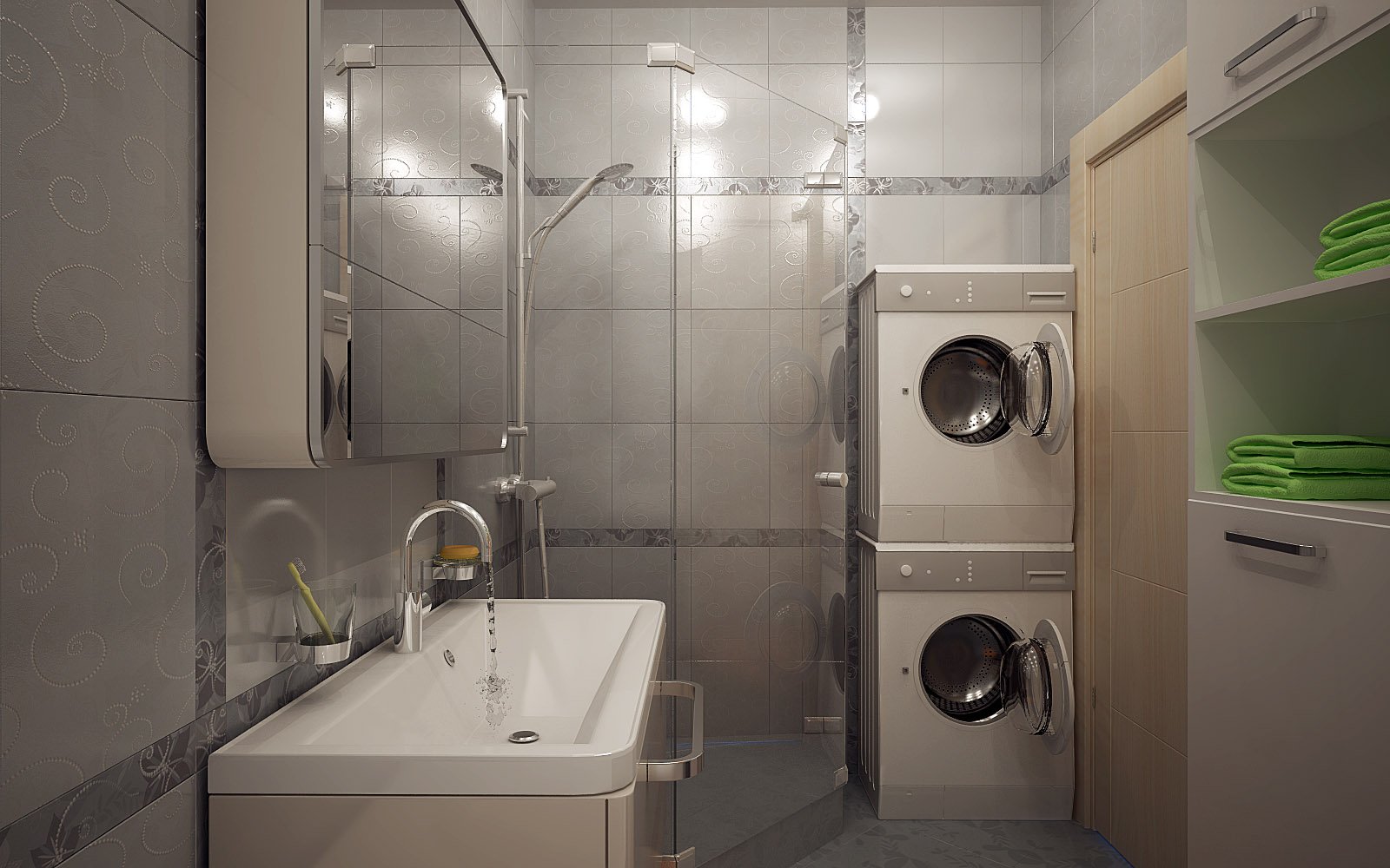 Стиралка и сушилка в комнате