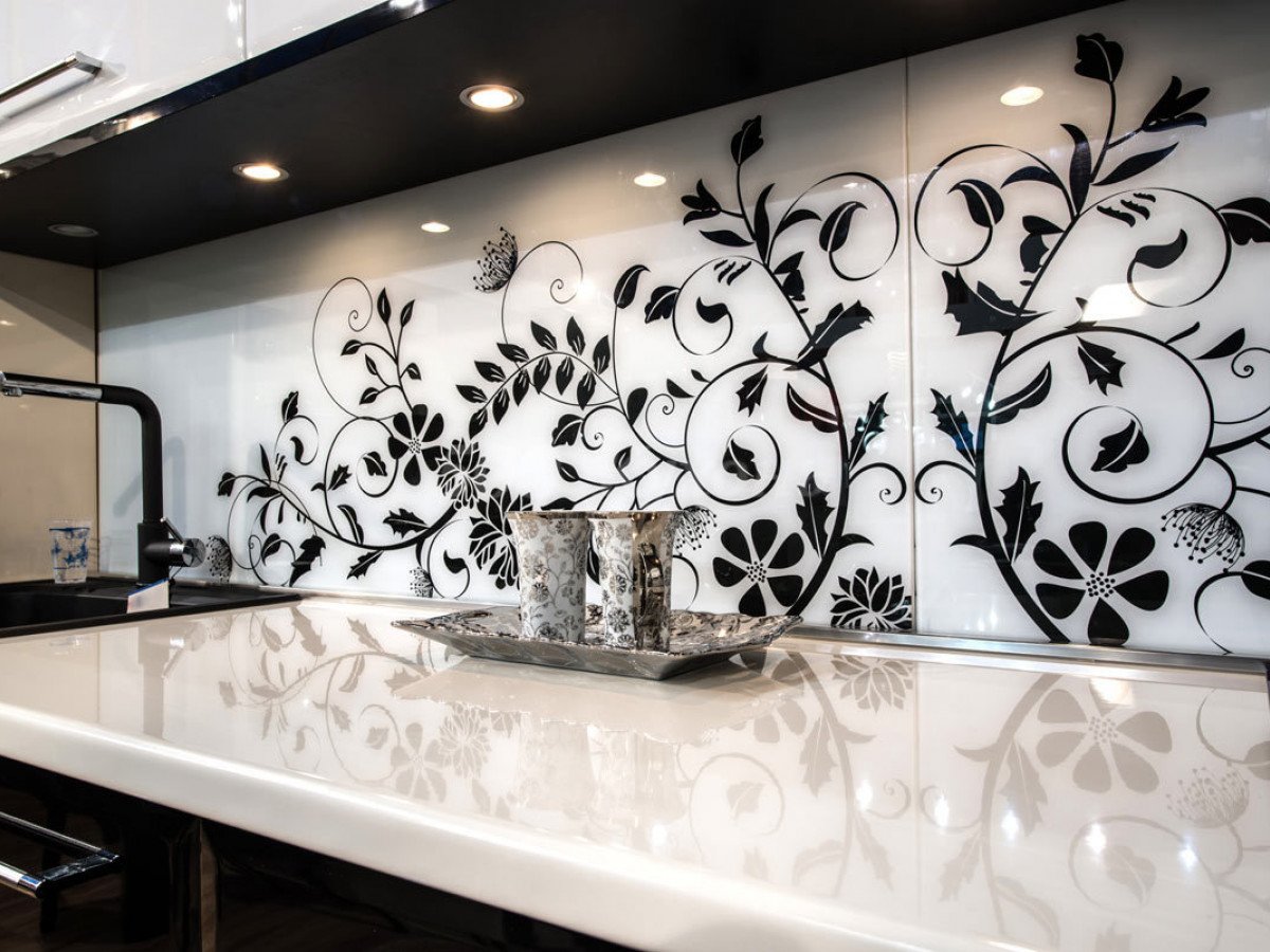 Стеновая панель для кухни черно белая