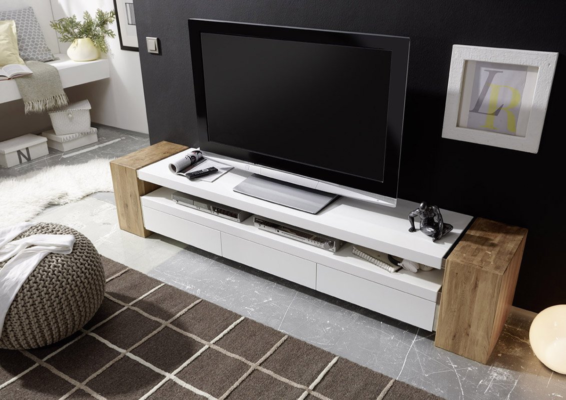Тумба под телевизор белая с деревом длинная