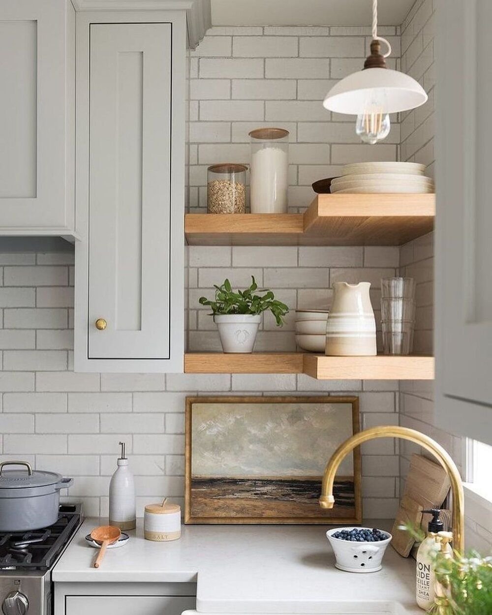 Небольшая кухня с открытыми полками