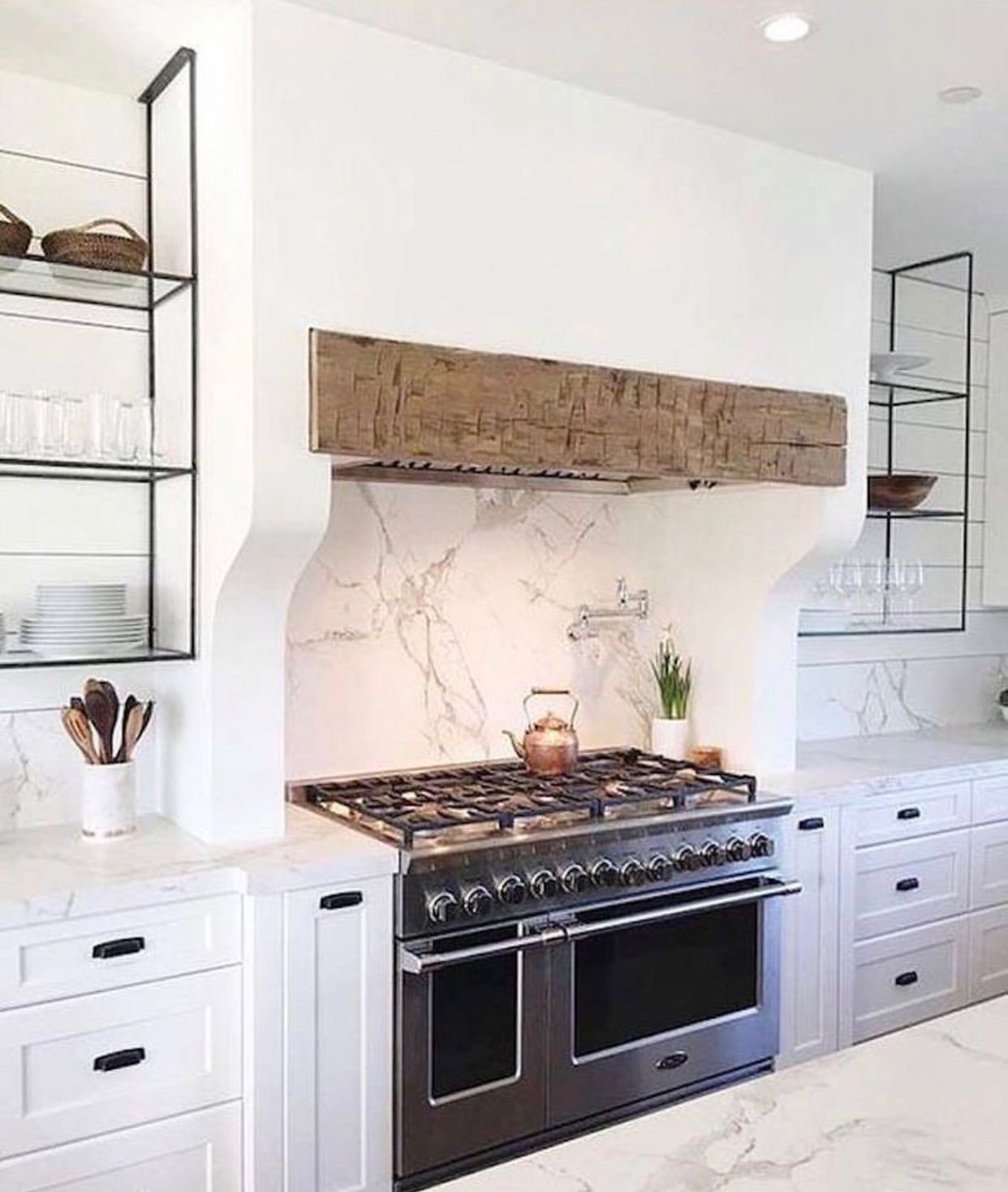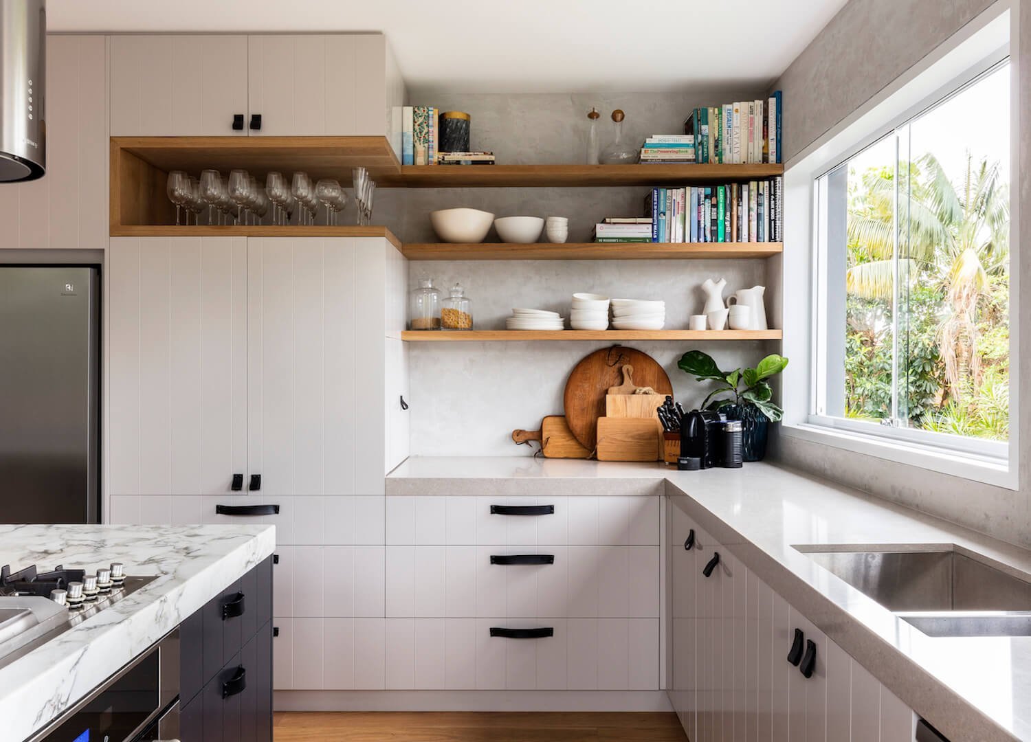 Кухня с вытяжкой и открытыми полками