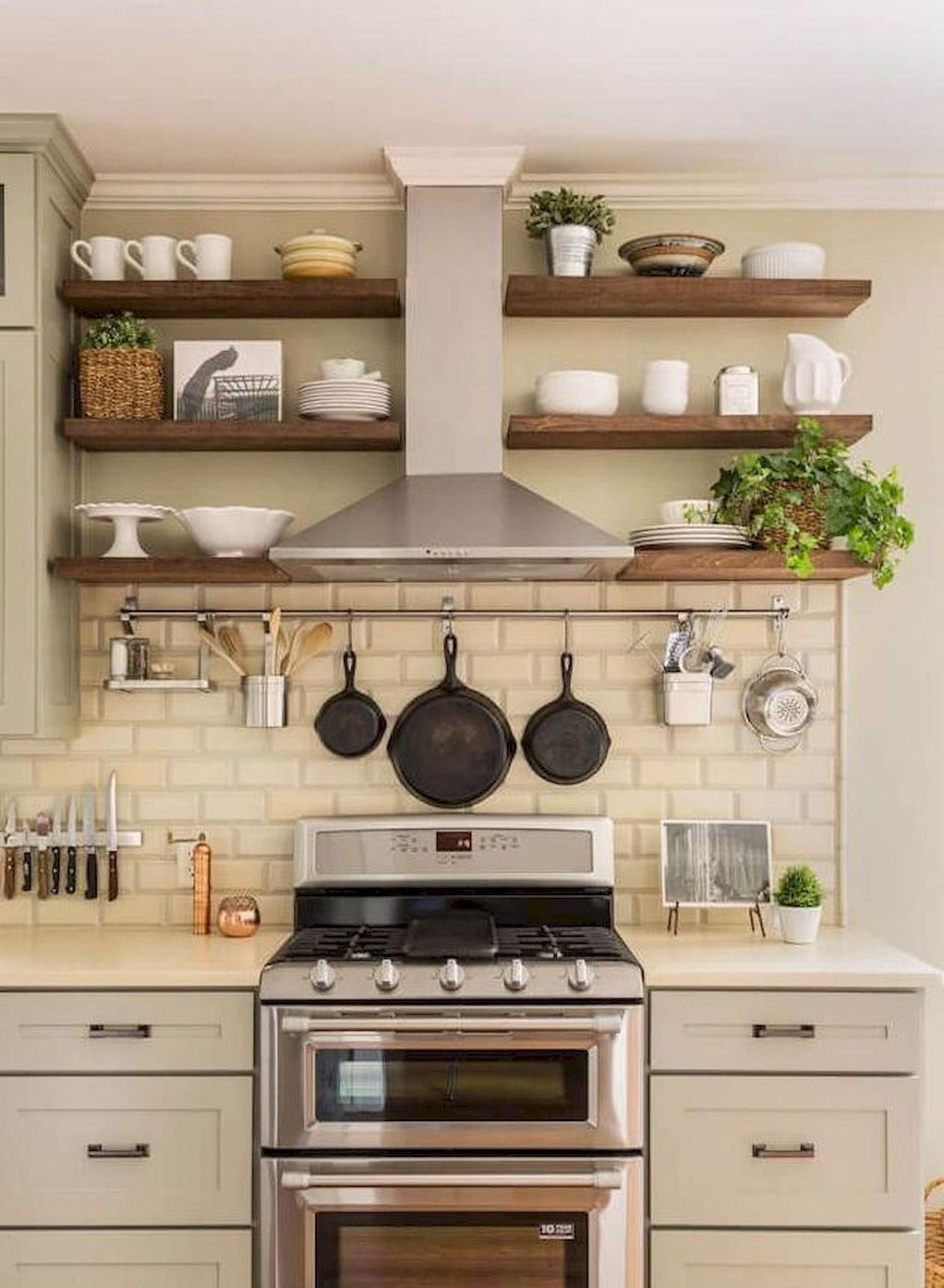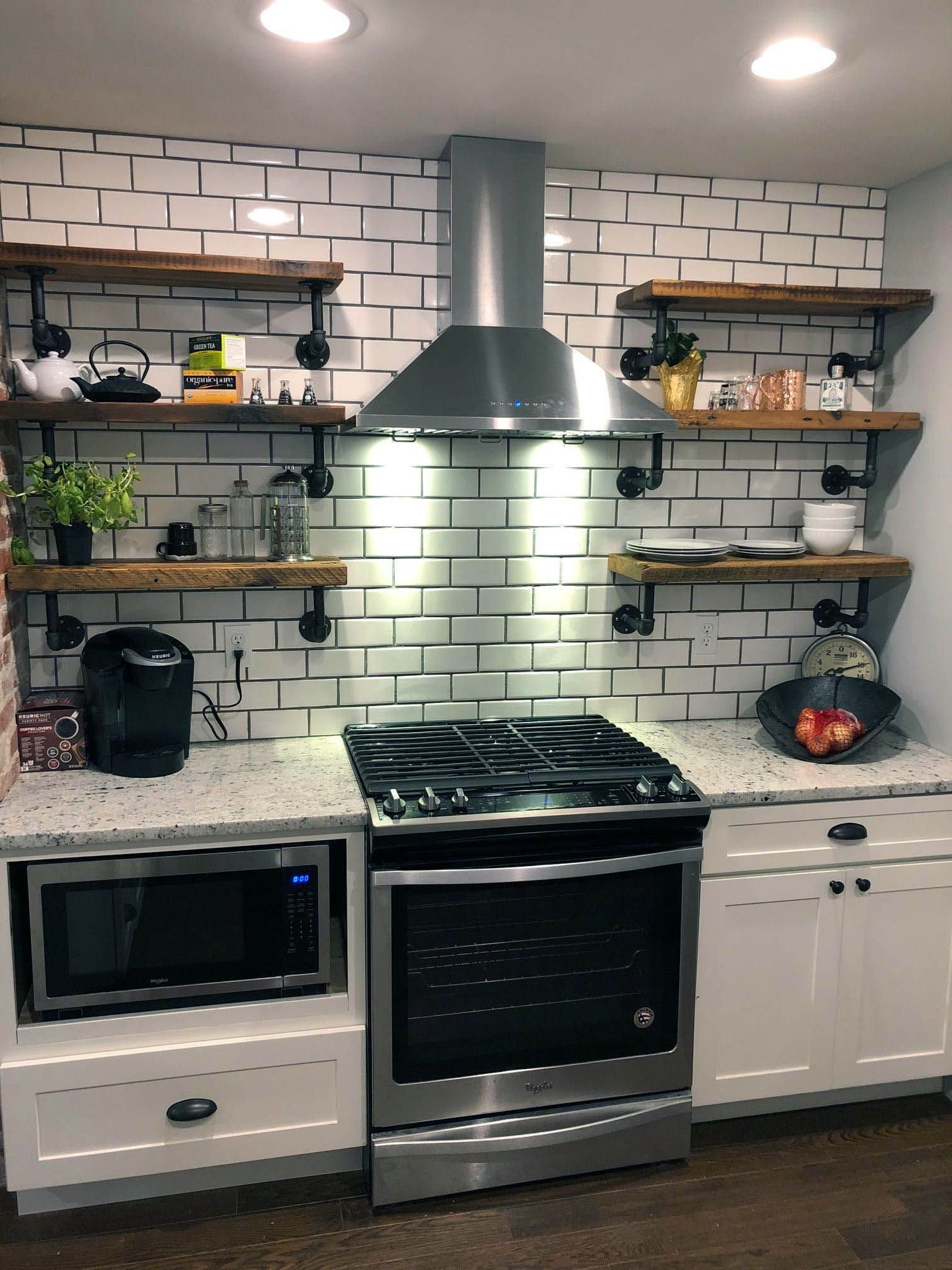 Кухня с полками над плитой