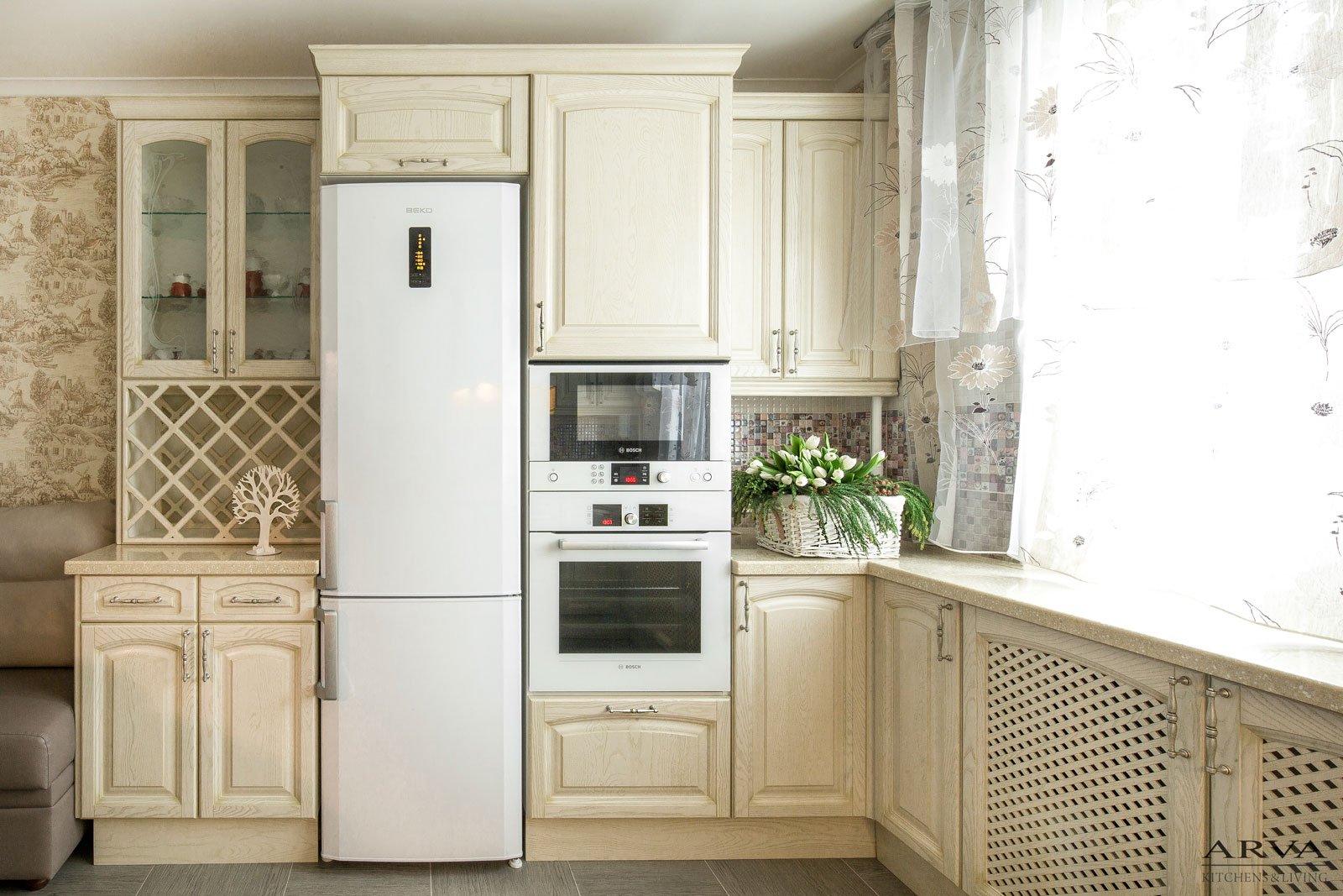 Бежевый холодильник в интерьере