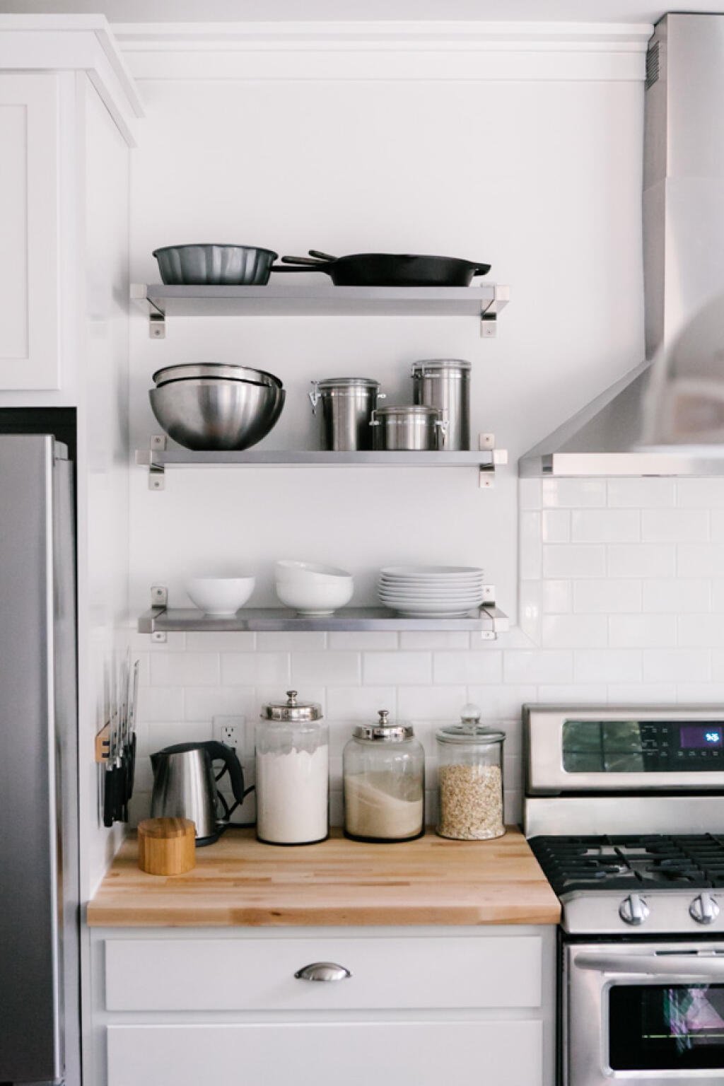 Открытые полки над плитой