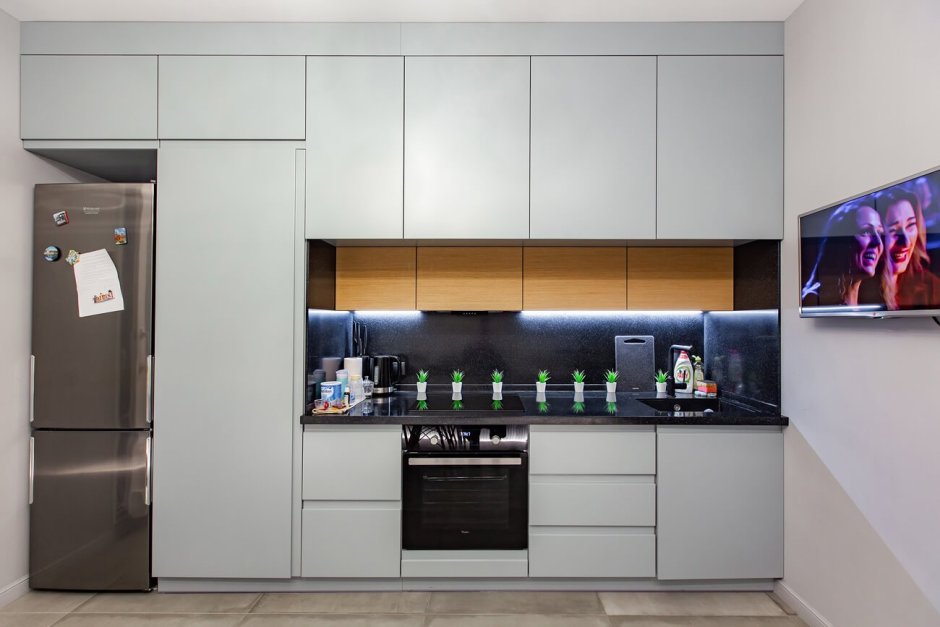 Кухня с антресолями до потолка