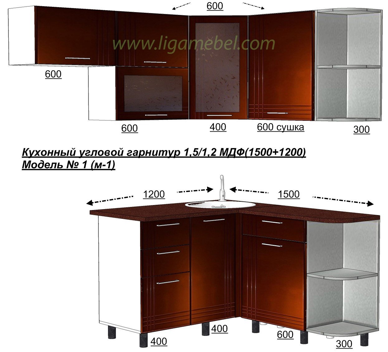 Кухонный гарнитур угловой 1.5 на 1.5