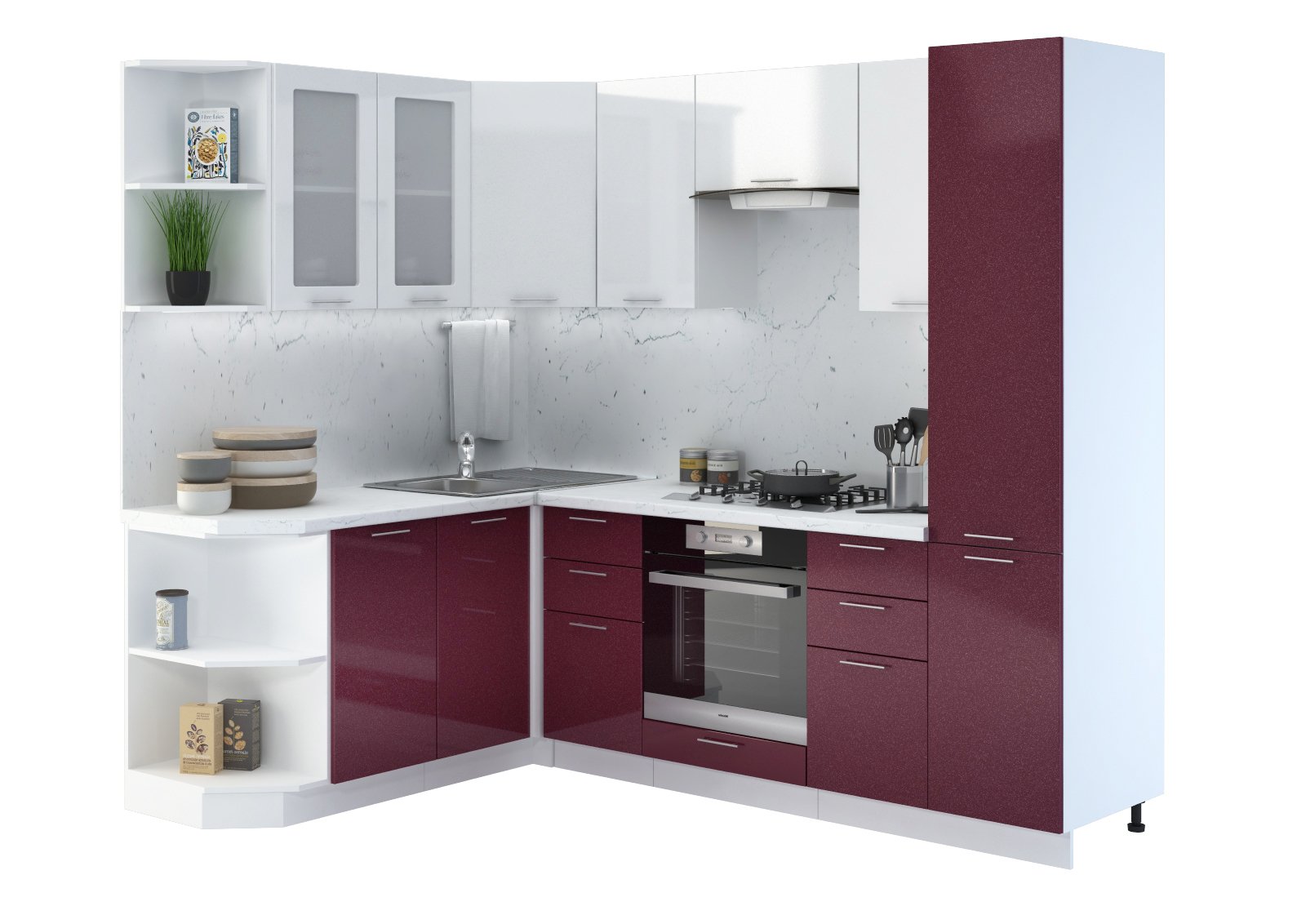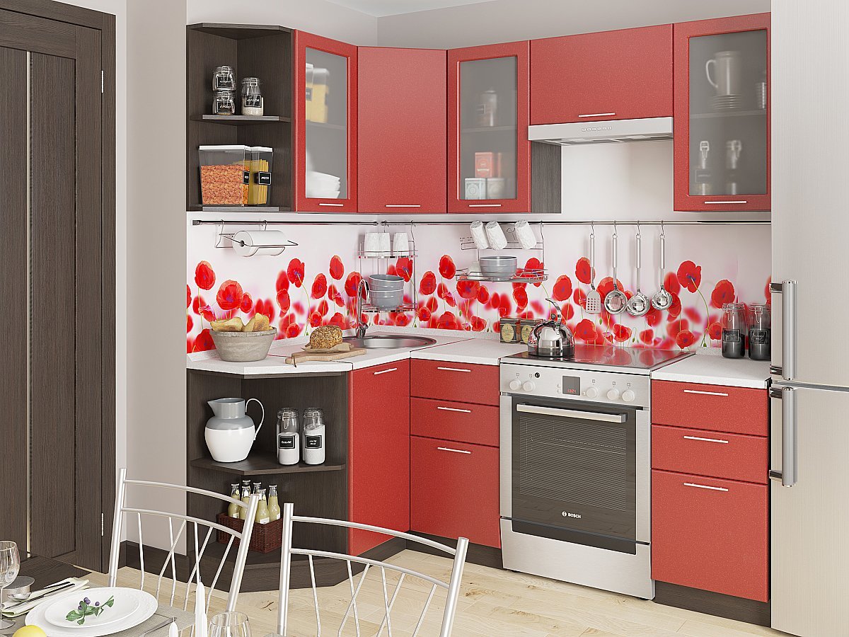 Кухни угловые малиновая