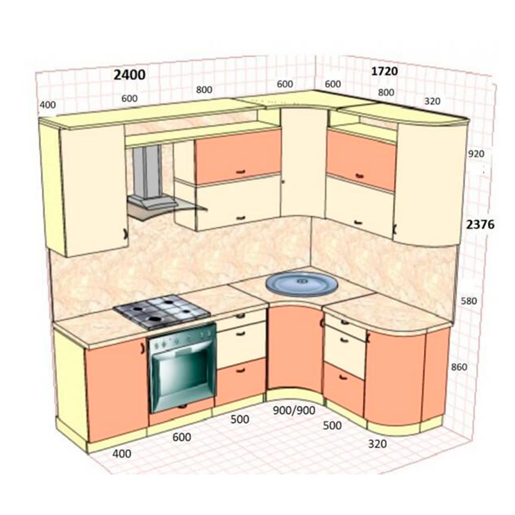 Проект угловой кухни с размерами