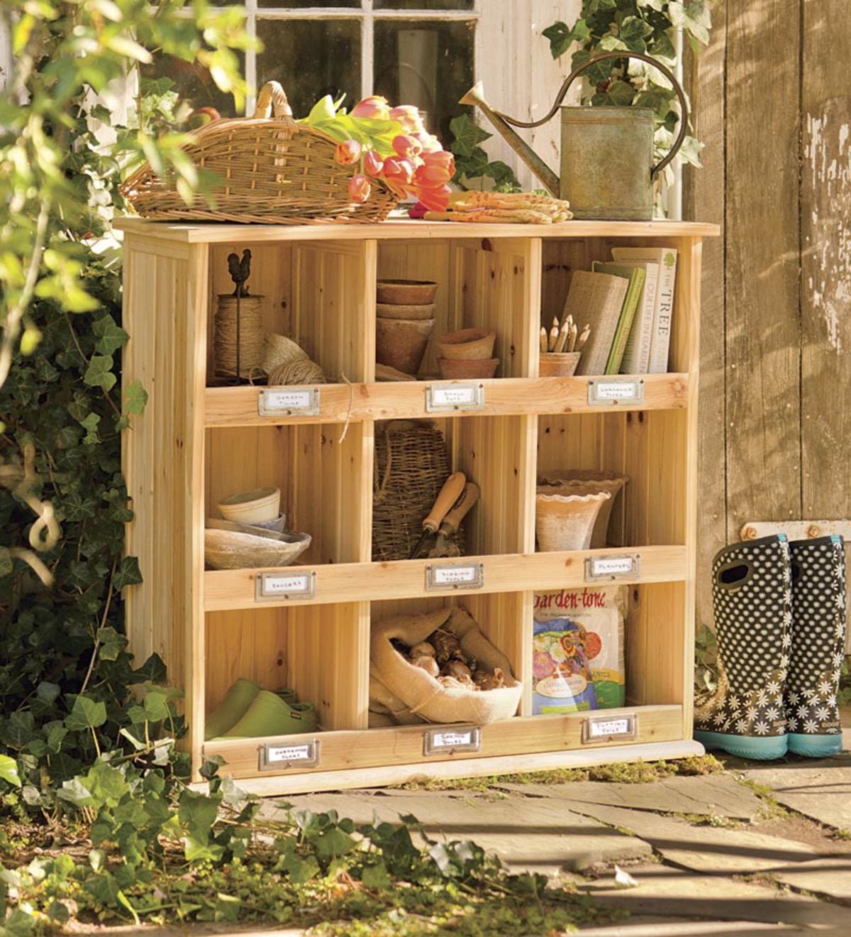 Деревянные стеллажи для сада