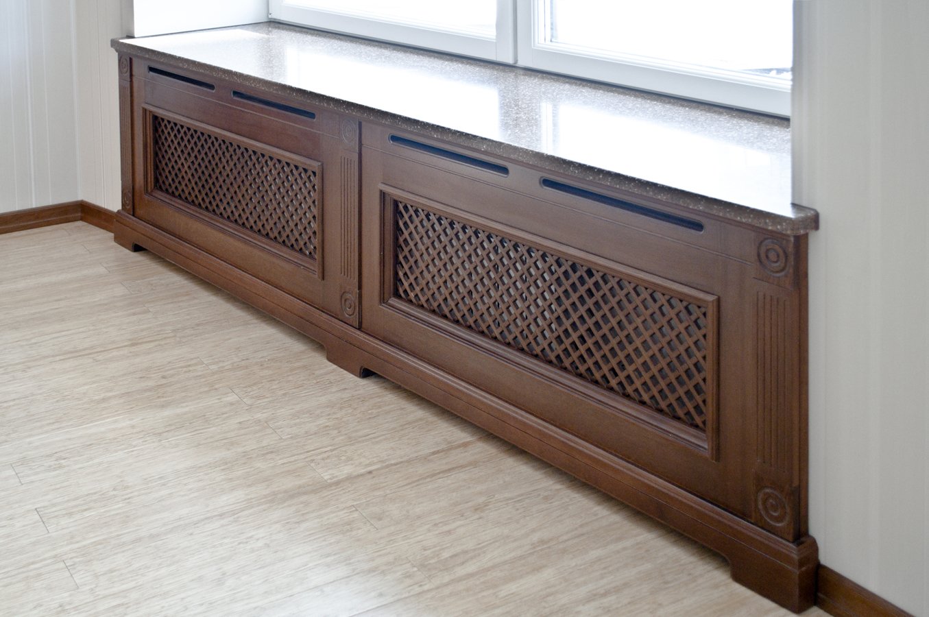 Деревянный подоконник с экраном для радиатора