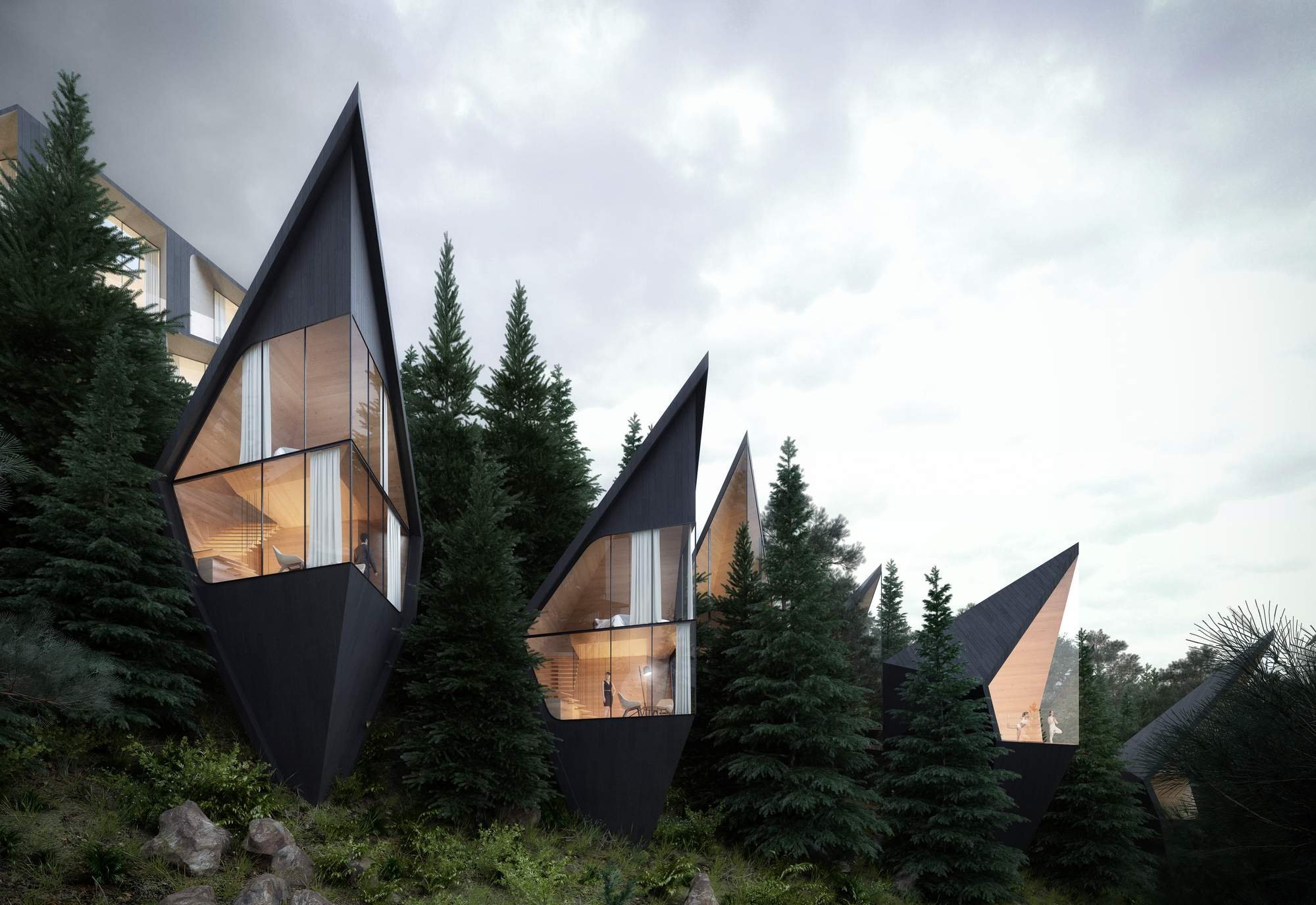 Футуристические домики на деревьях в Доломитовых Альпах Италии