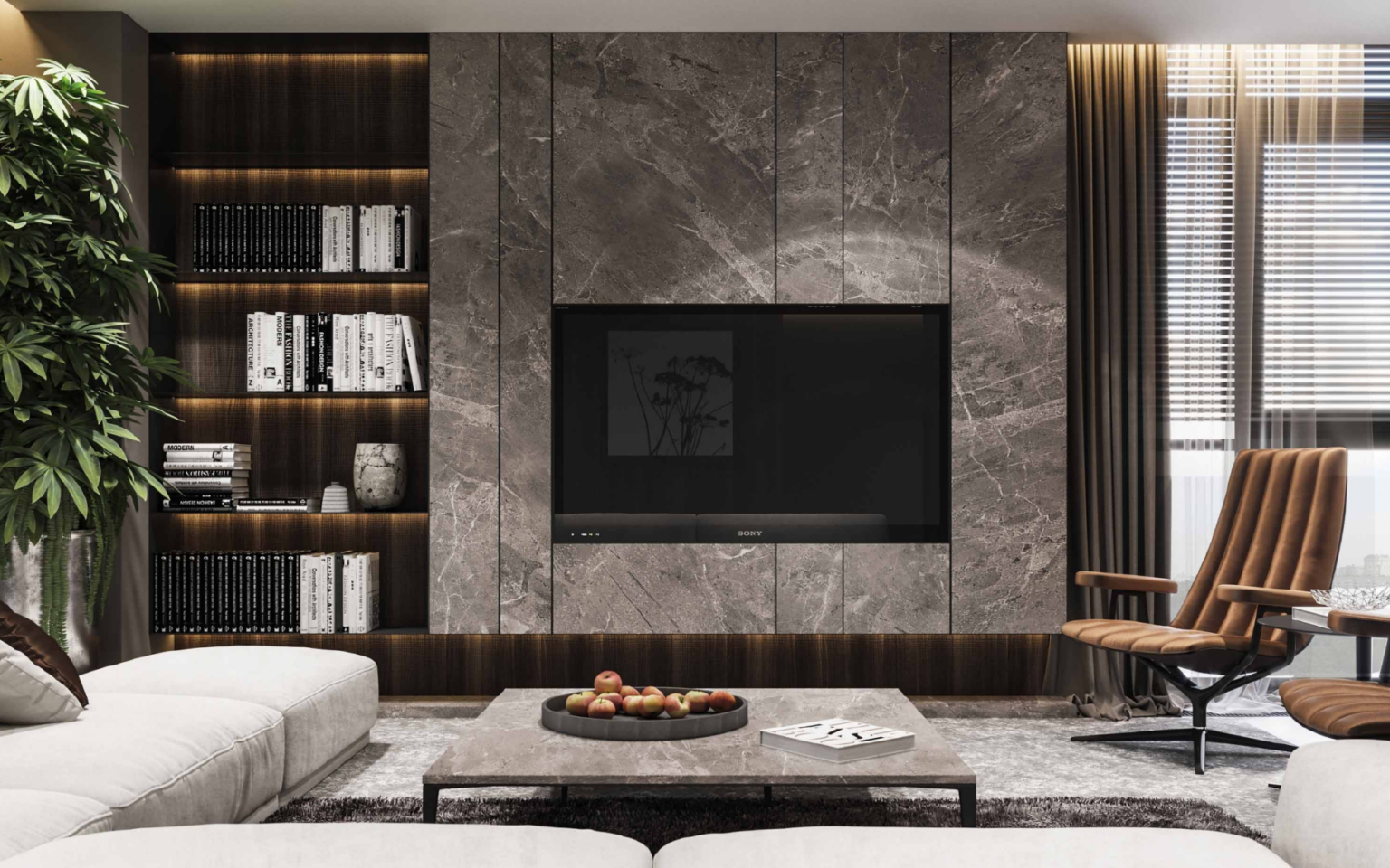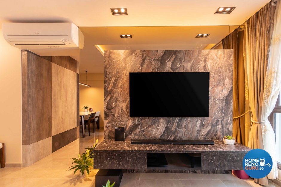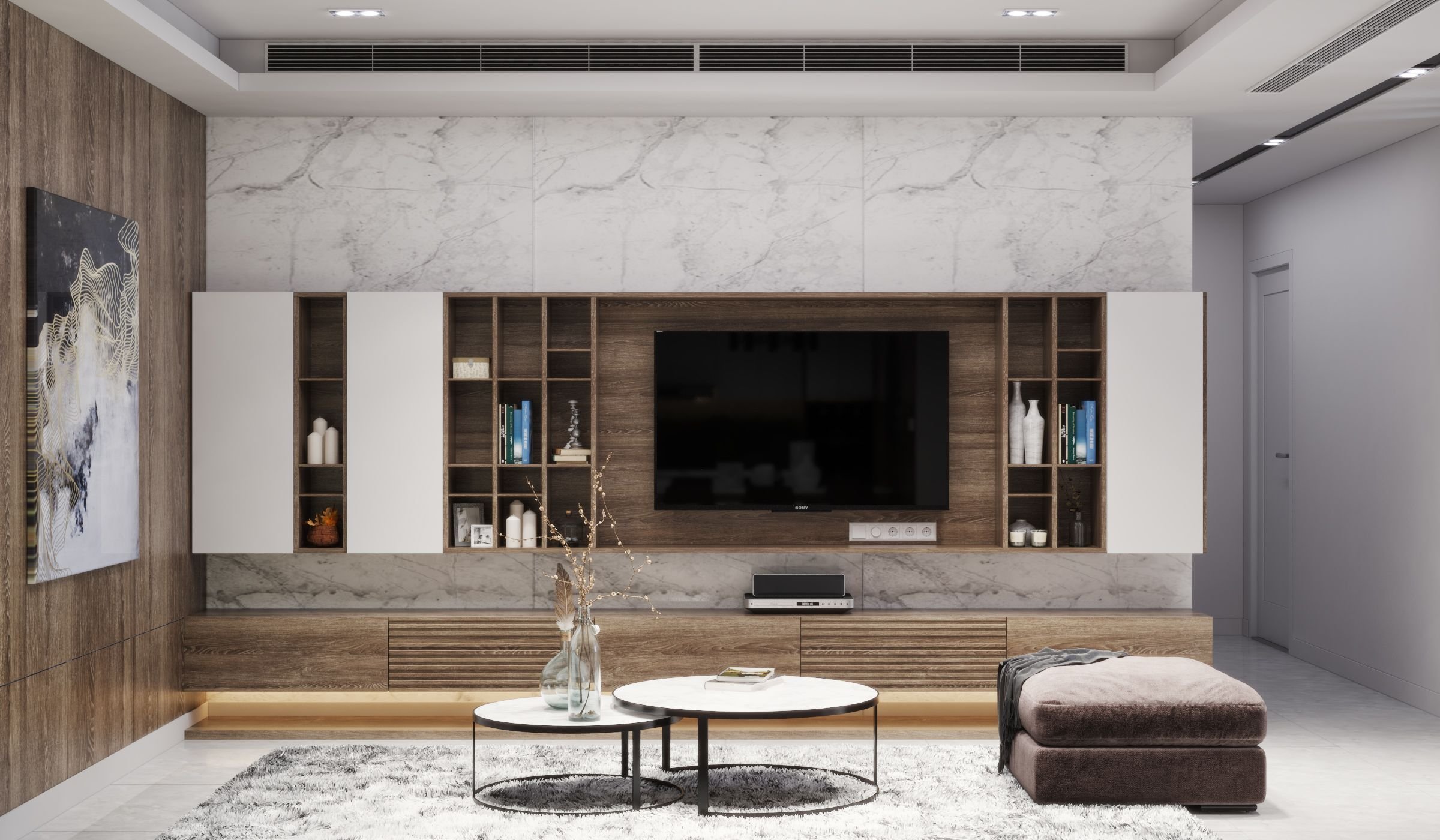 Стена под телевизор в гостиной под мрамор