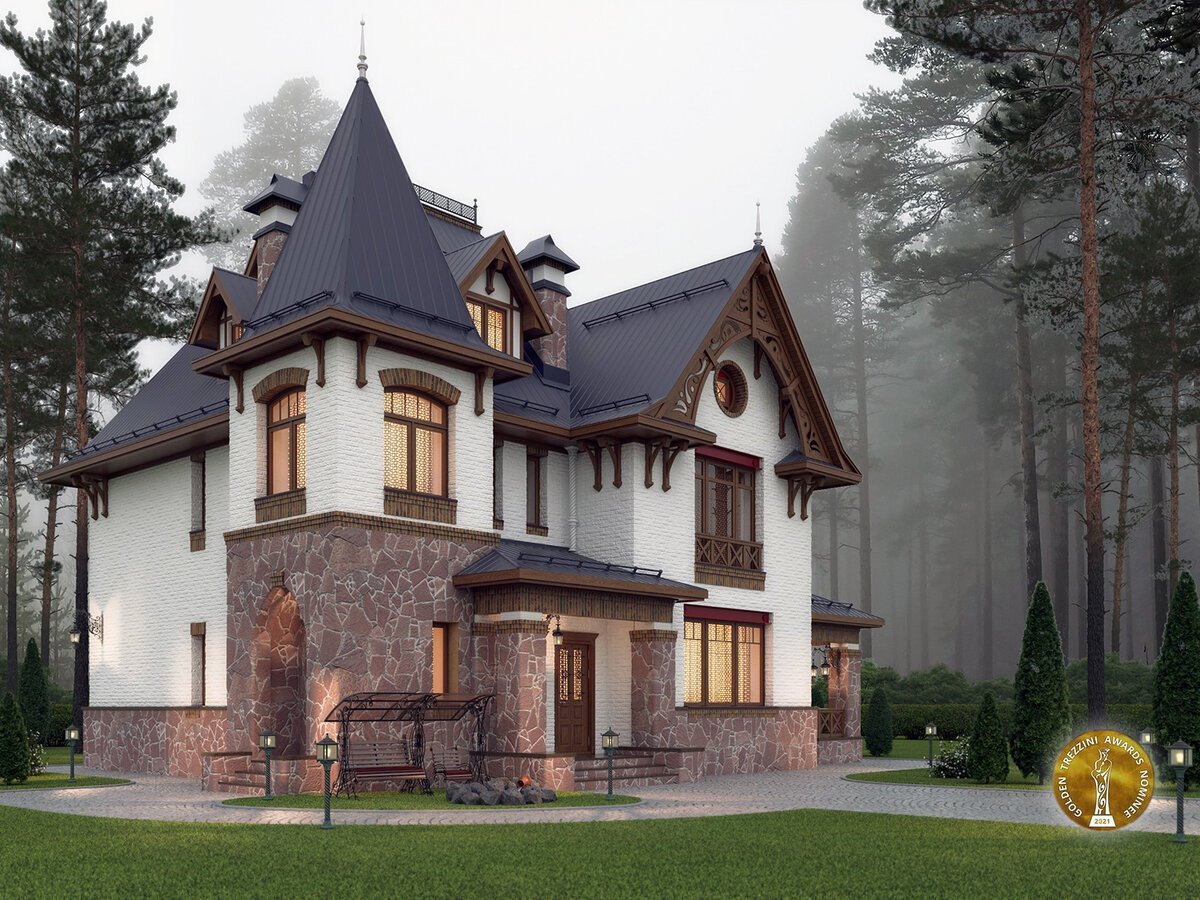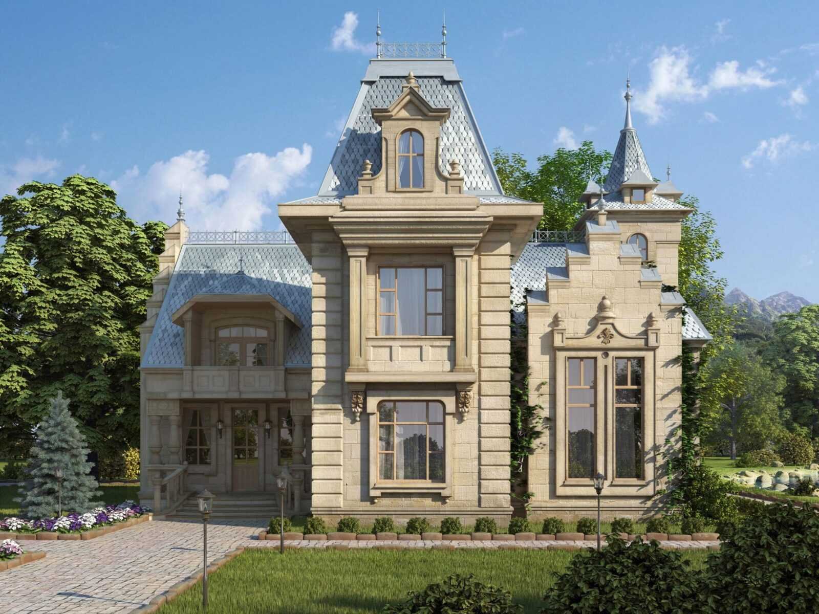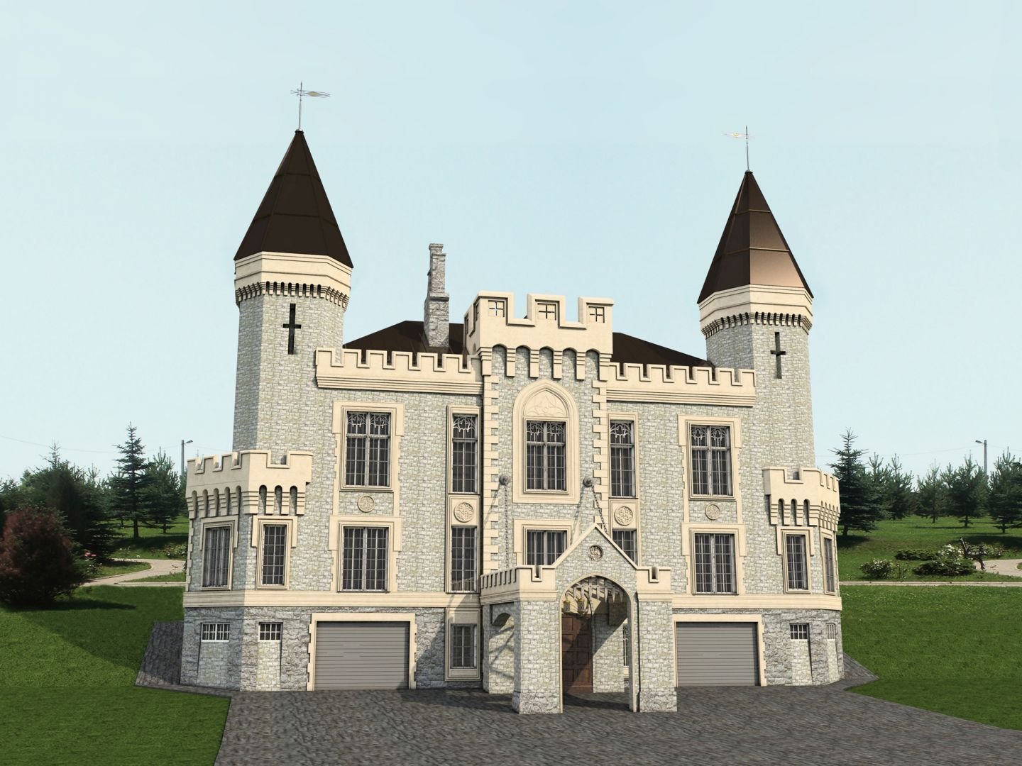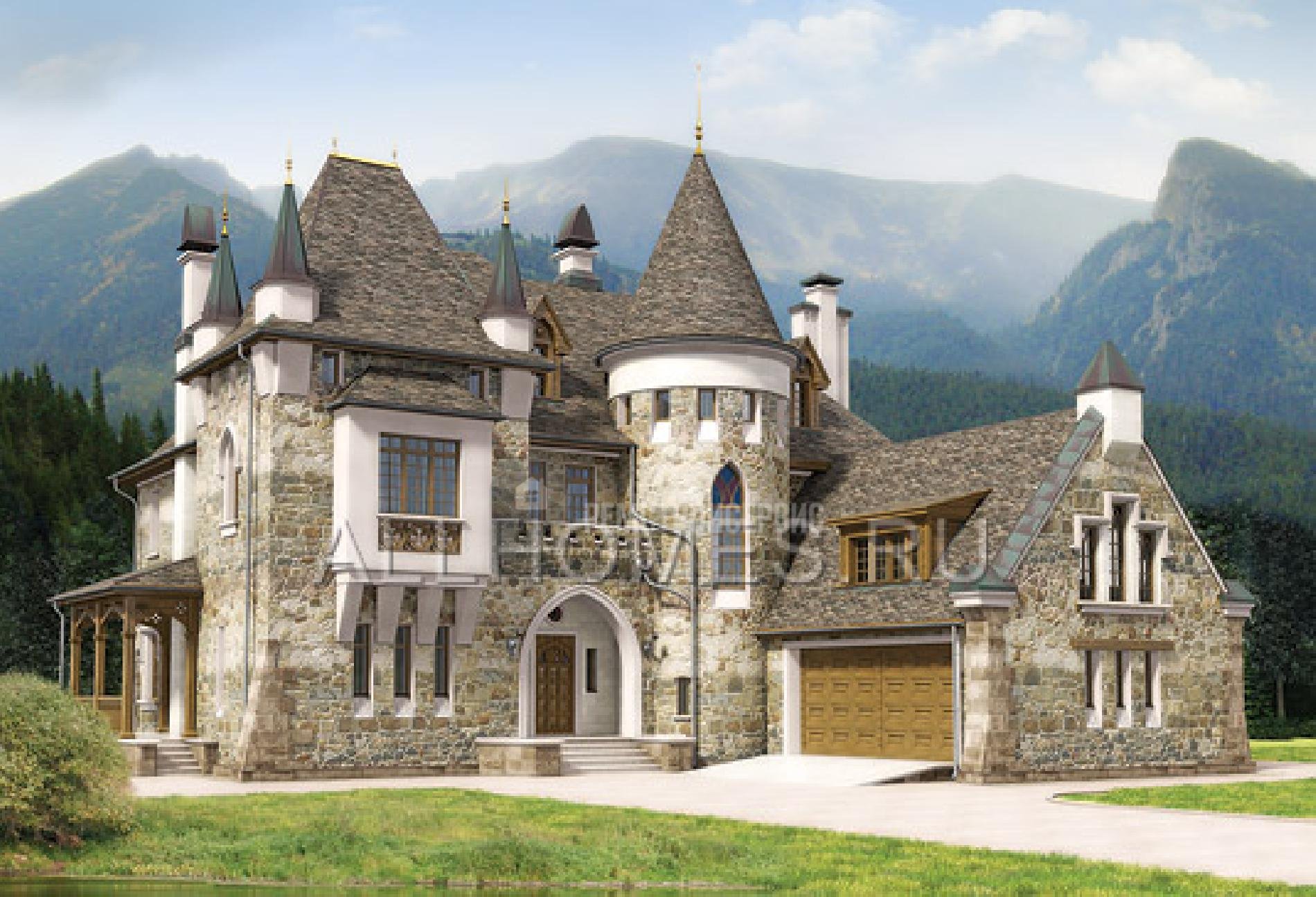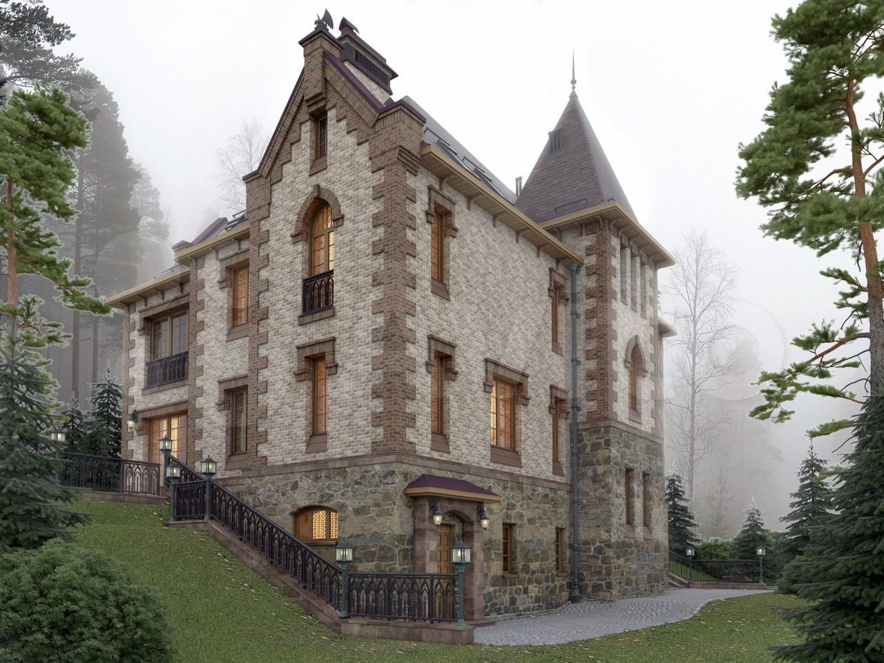 Проект кирпичного особняка в замковом стиле проекта v-901-1k