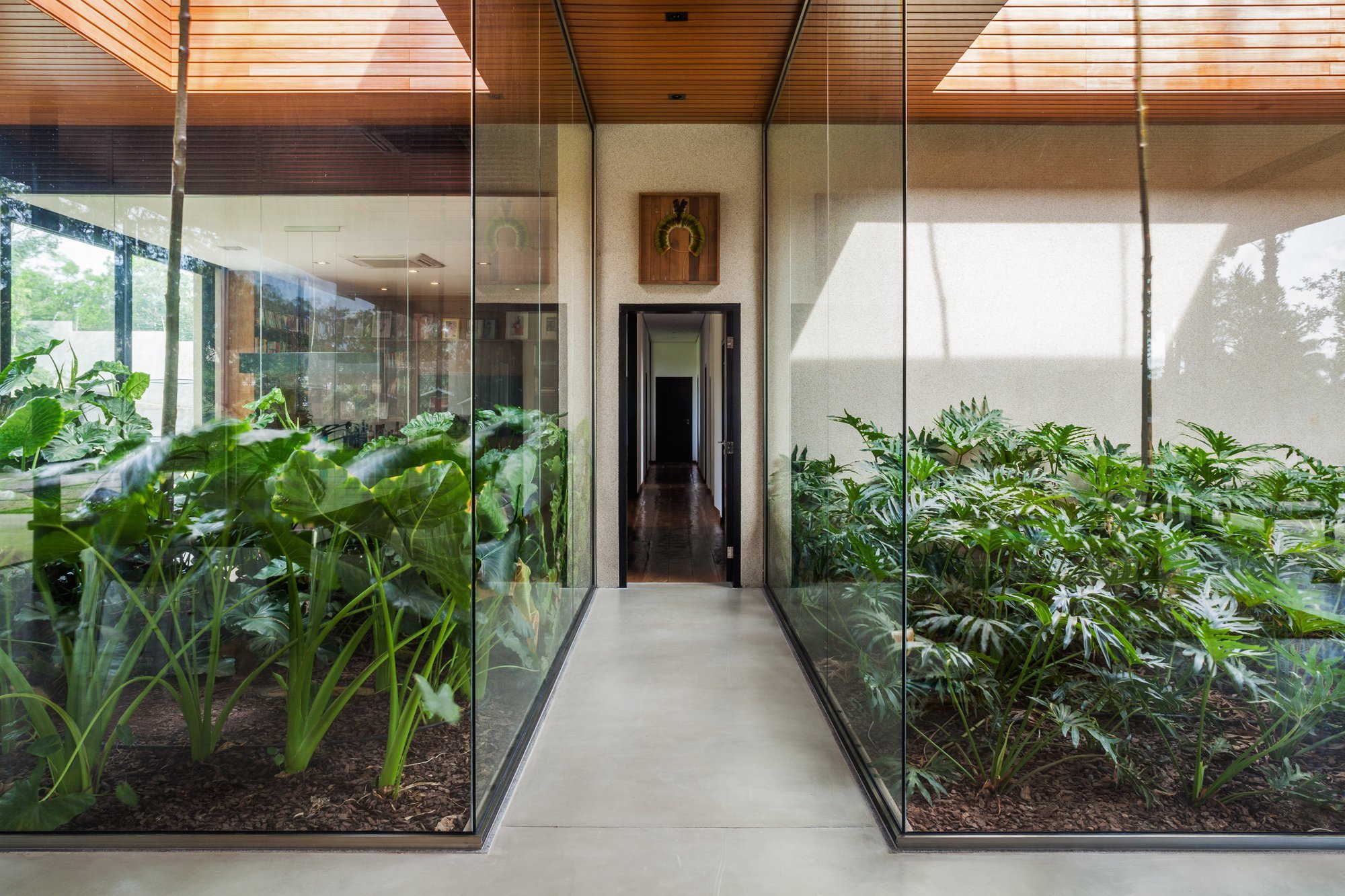 Стеклянная стена с растениями