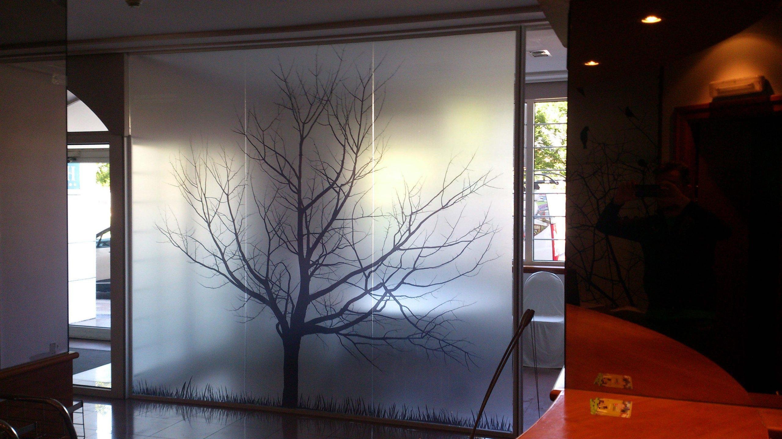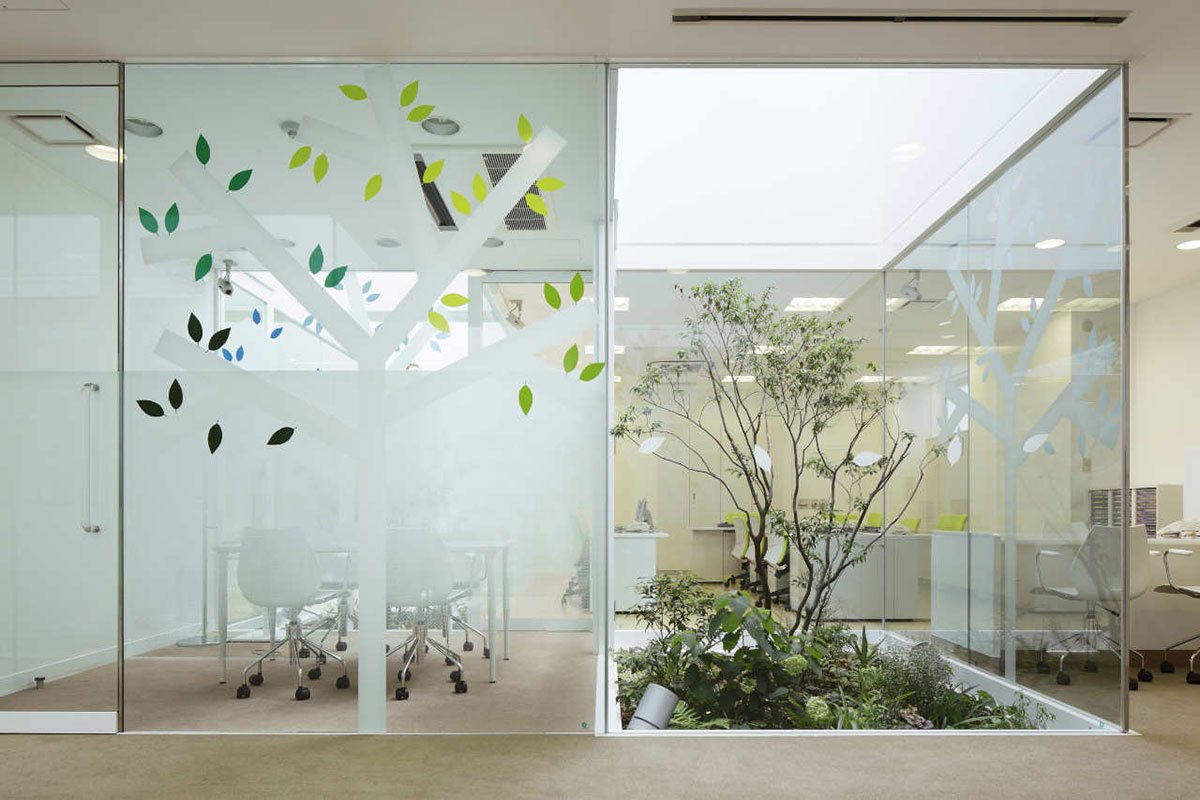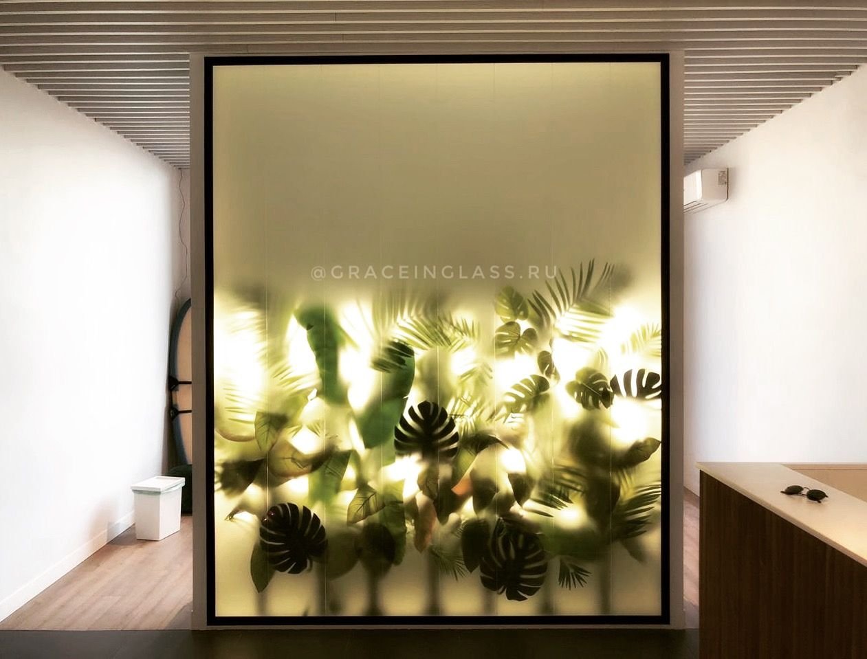 Стеклянная перегородка с растениями