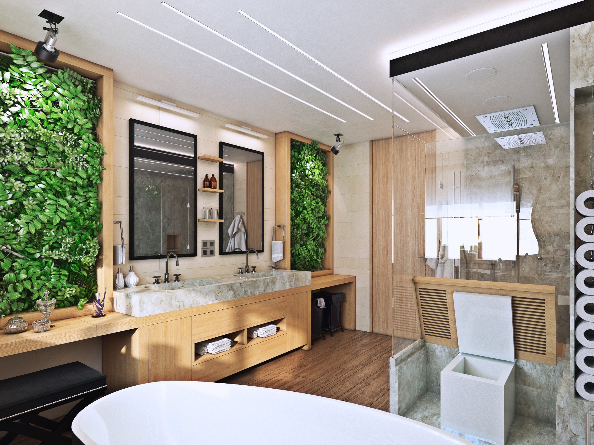 Перегородки с подсветкой и растениями