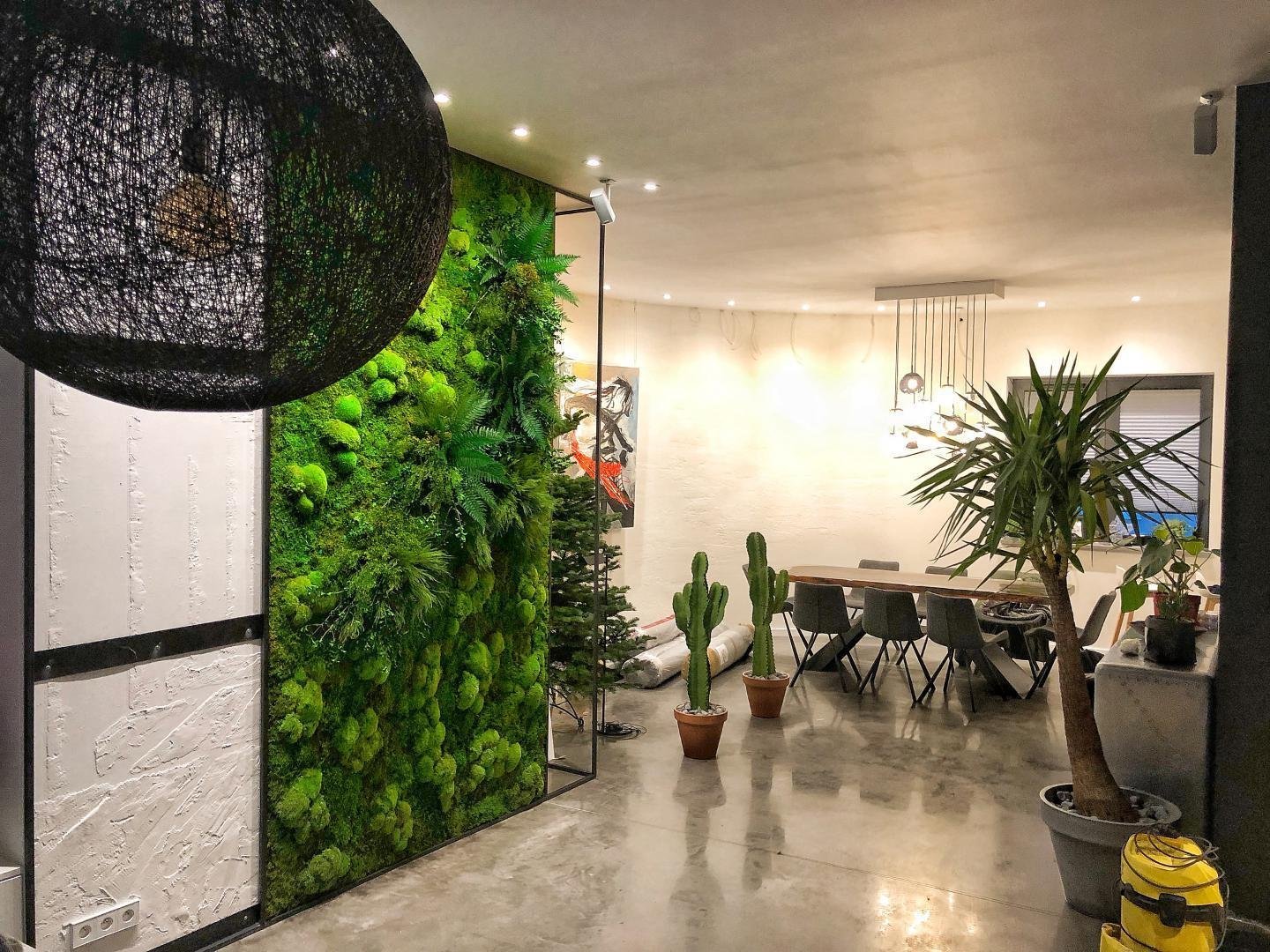 Экостиль в гостиной с фитостеной