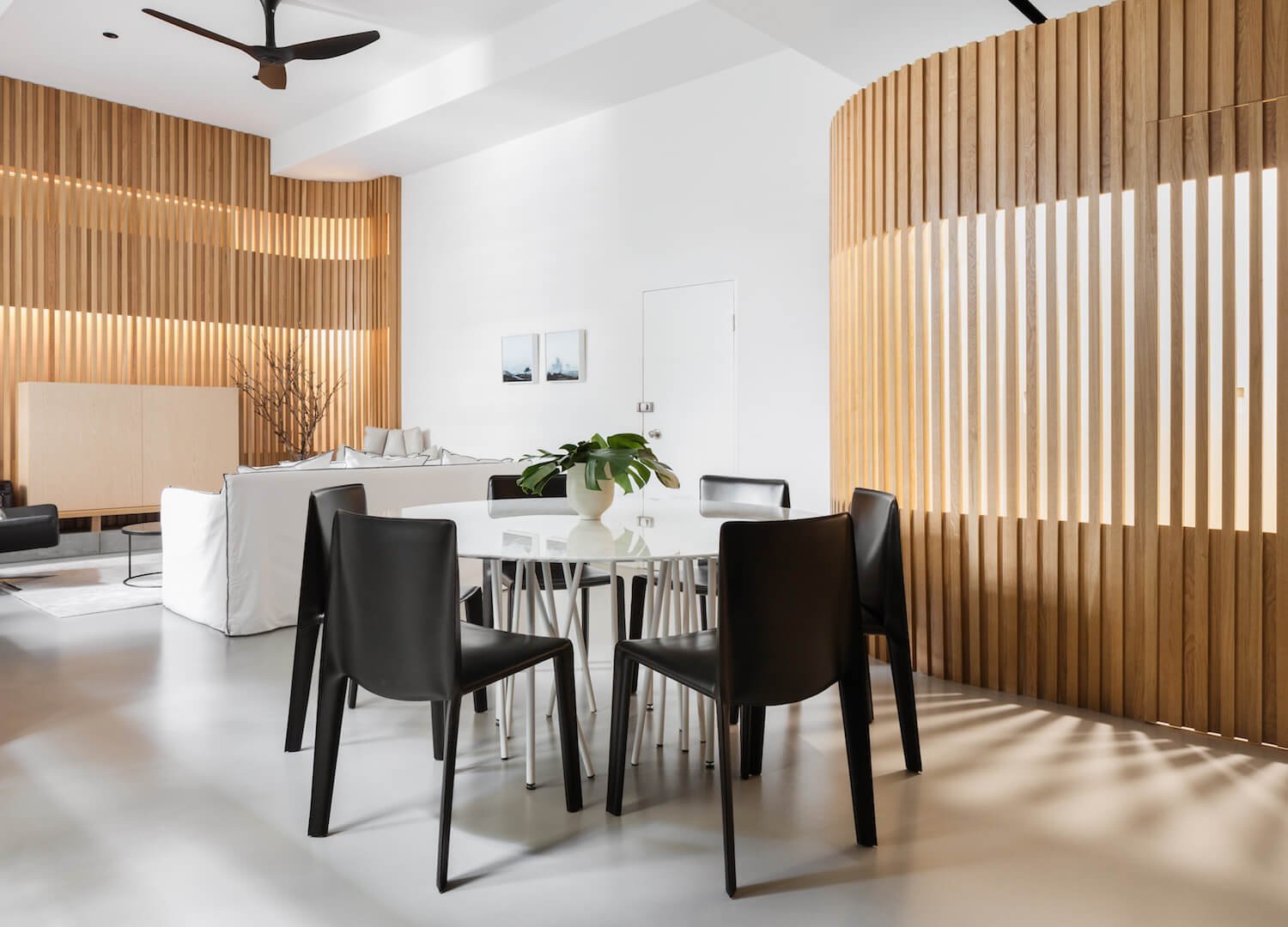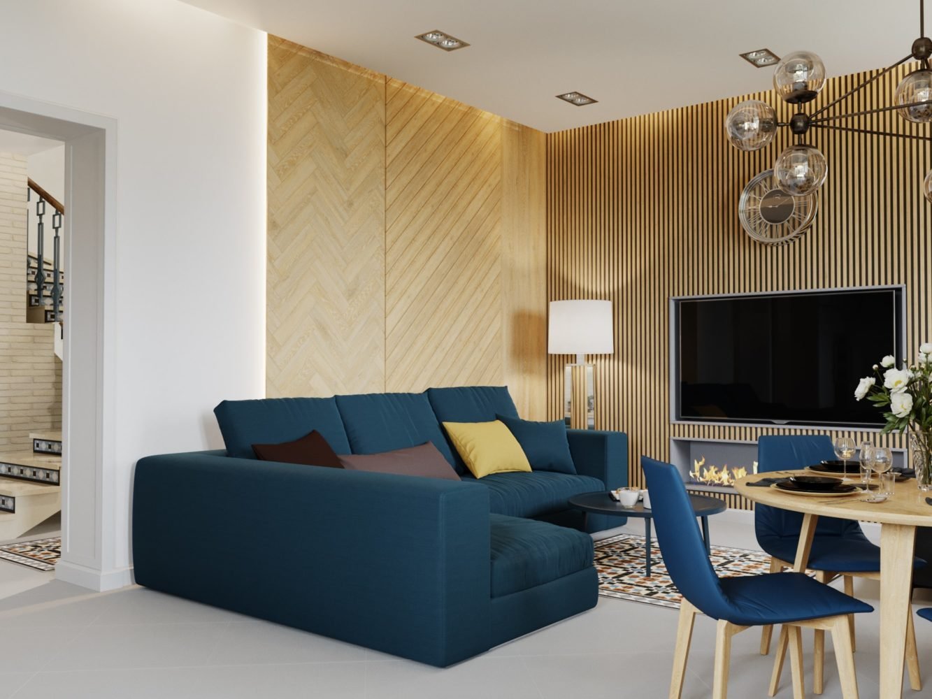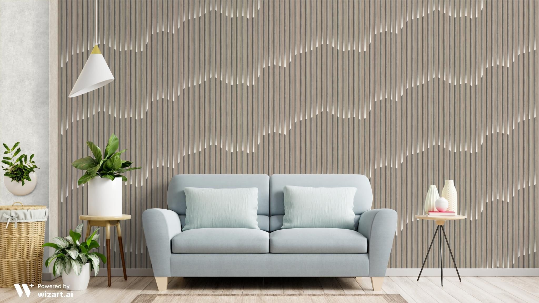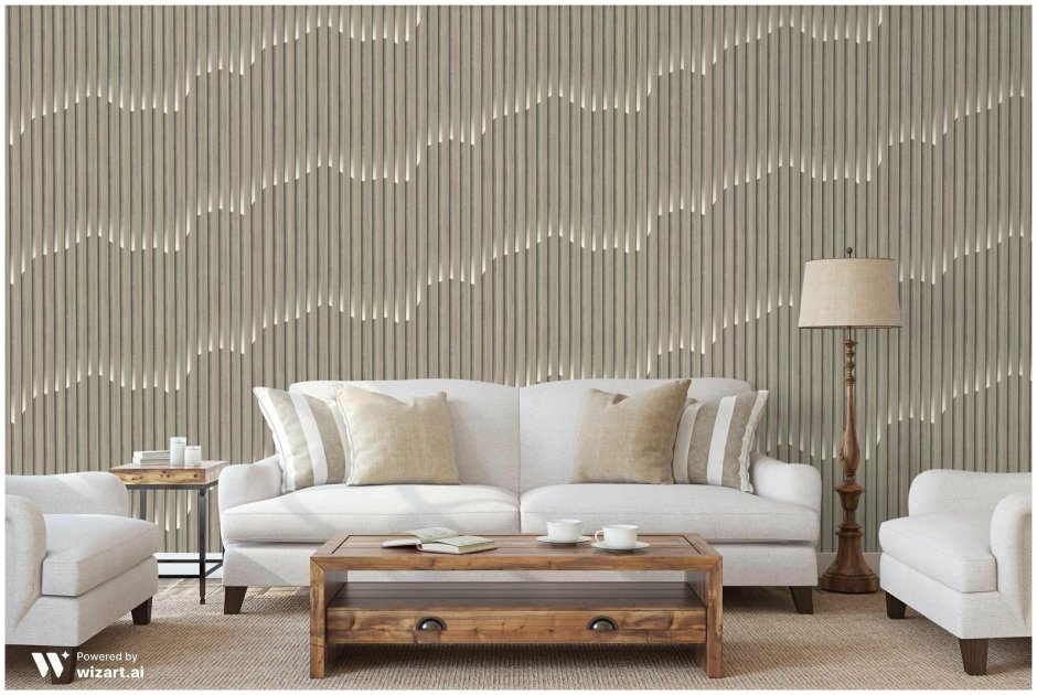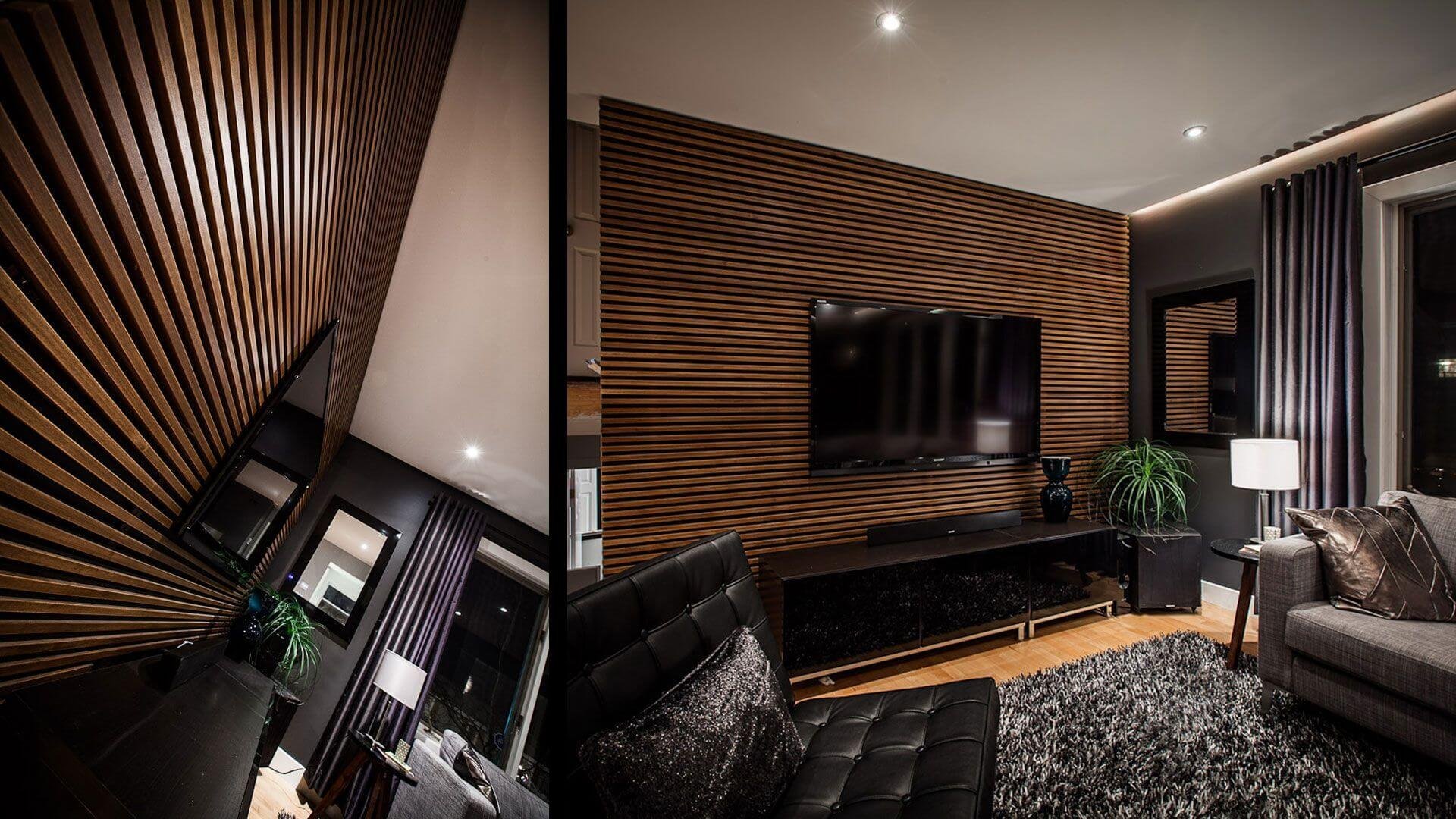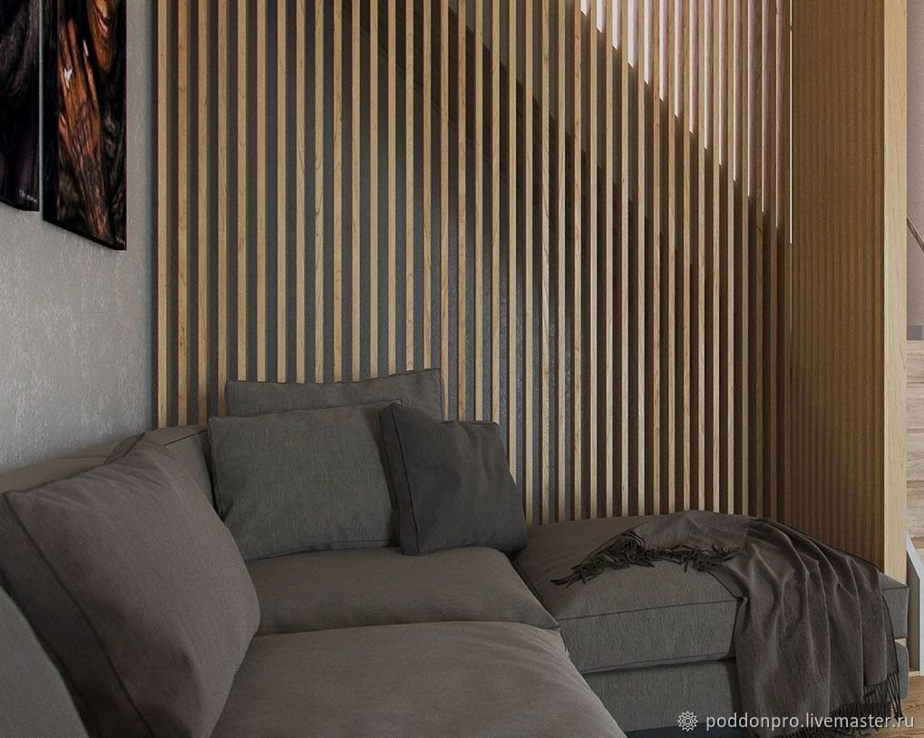 Гостиная с деревянными рейками