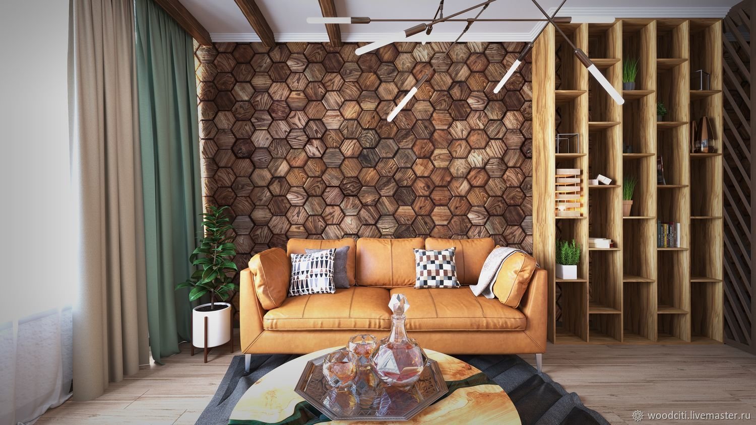 Деревянные шестигранники на стену