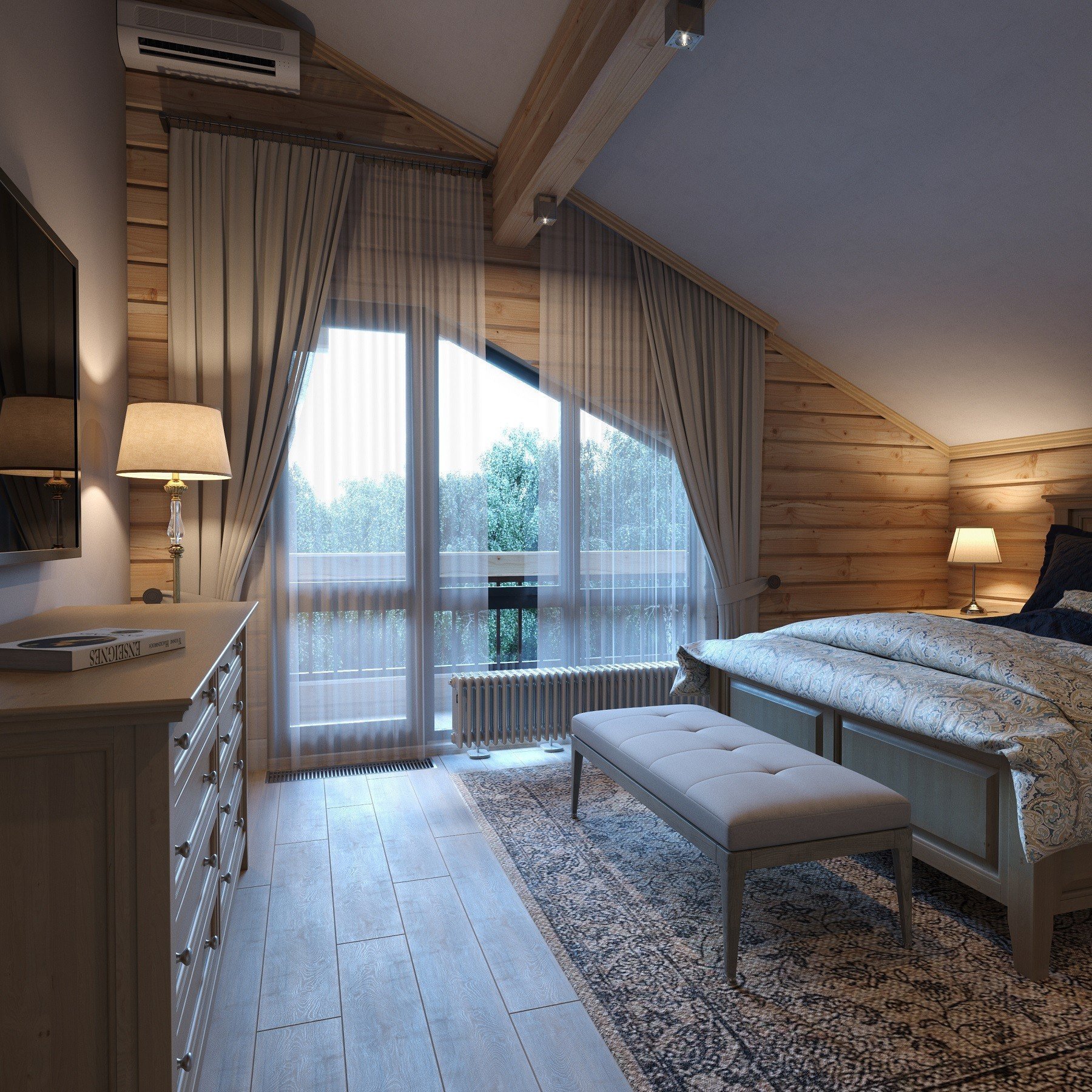 Спальня на мансарде с балконом