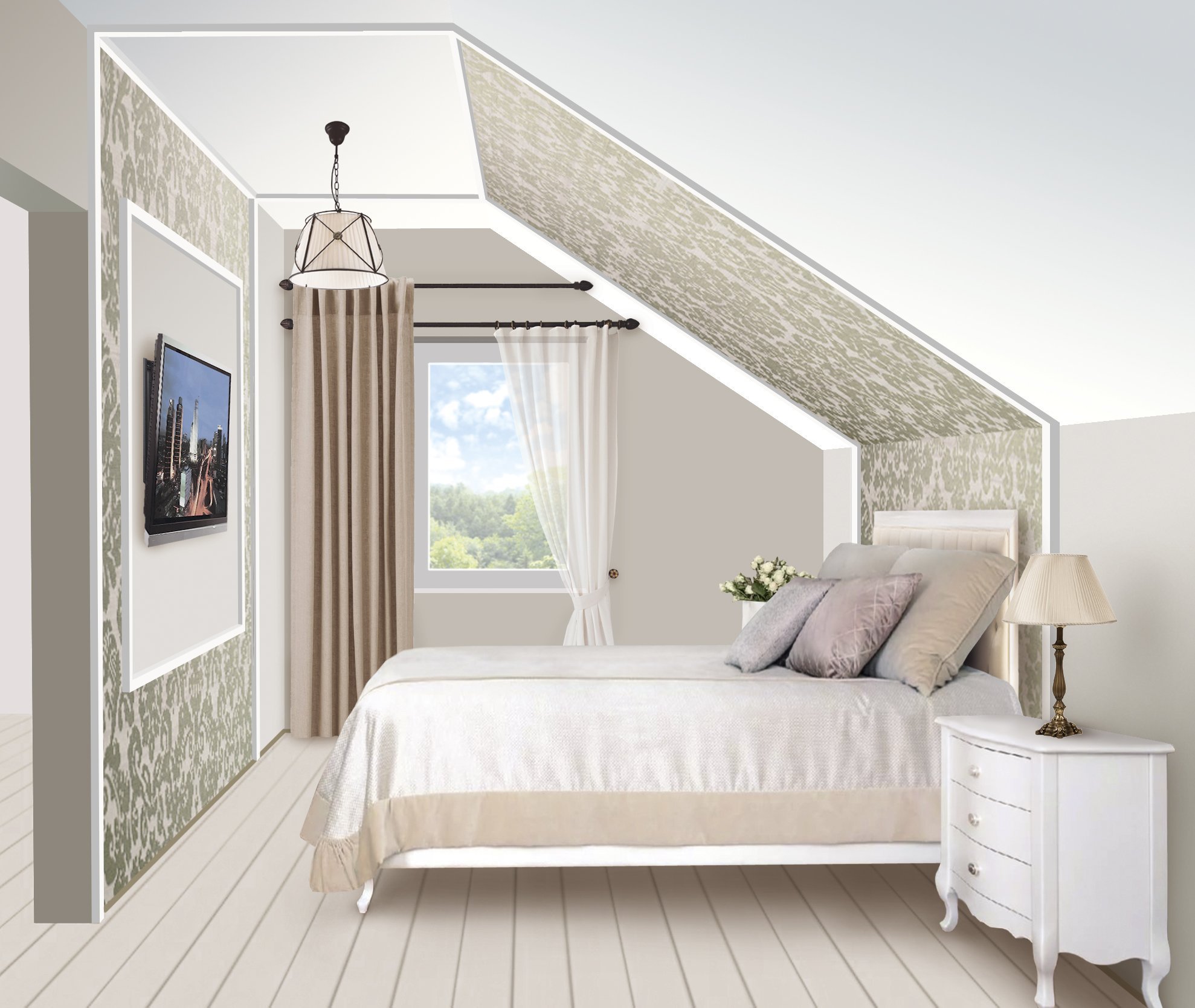 Уютная спальная на чердаке