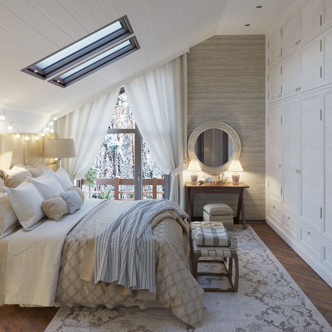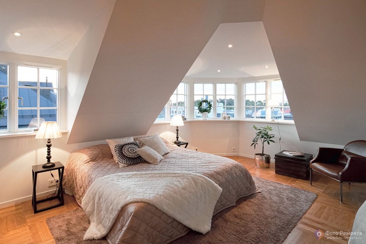Спальня с мансардными окнами