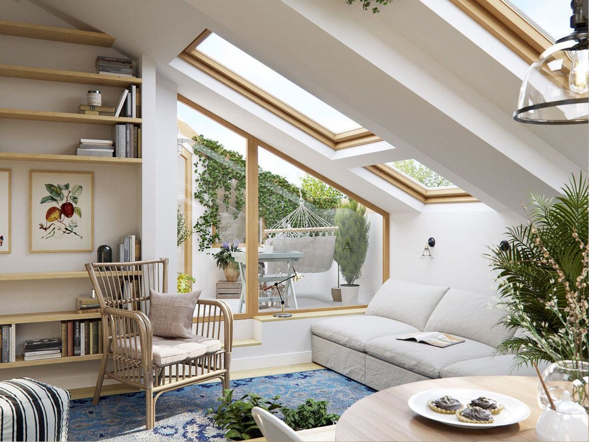 Комната с окном на крыше