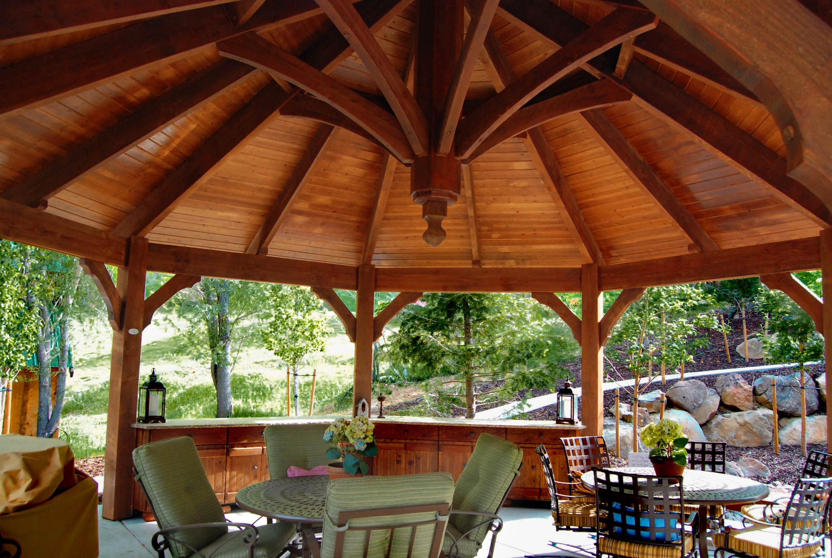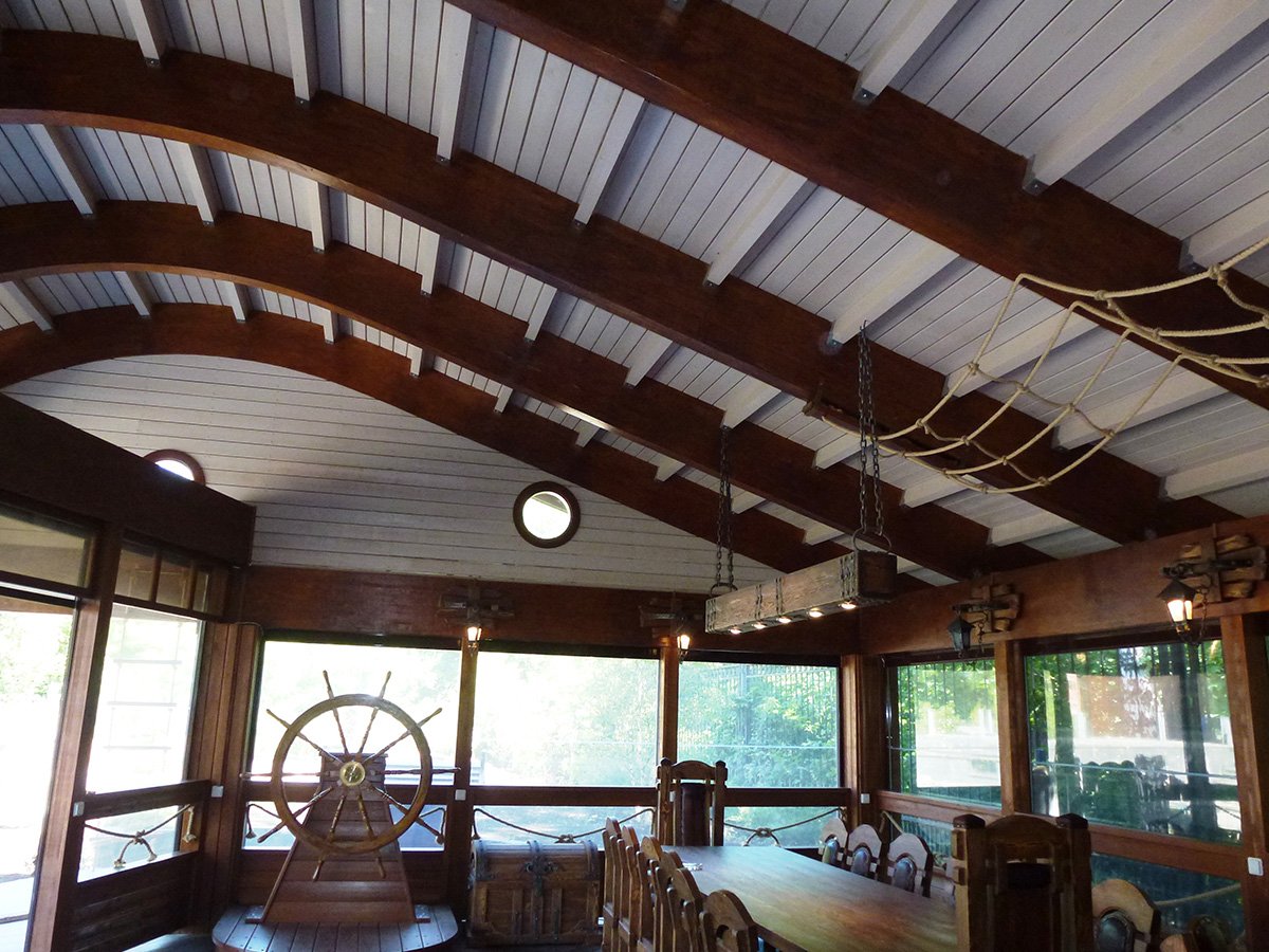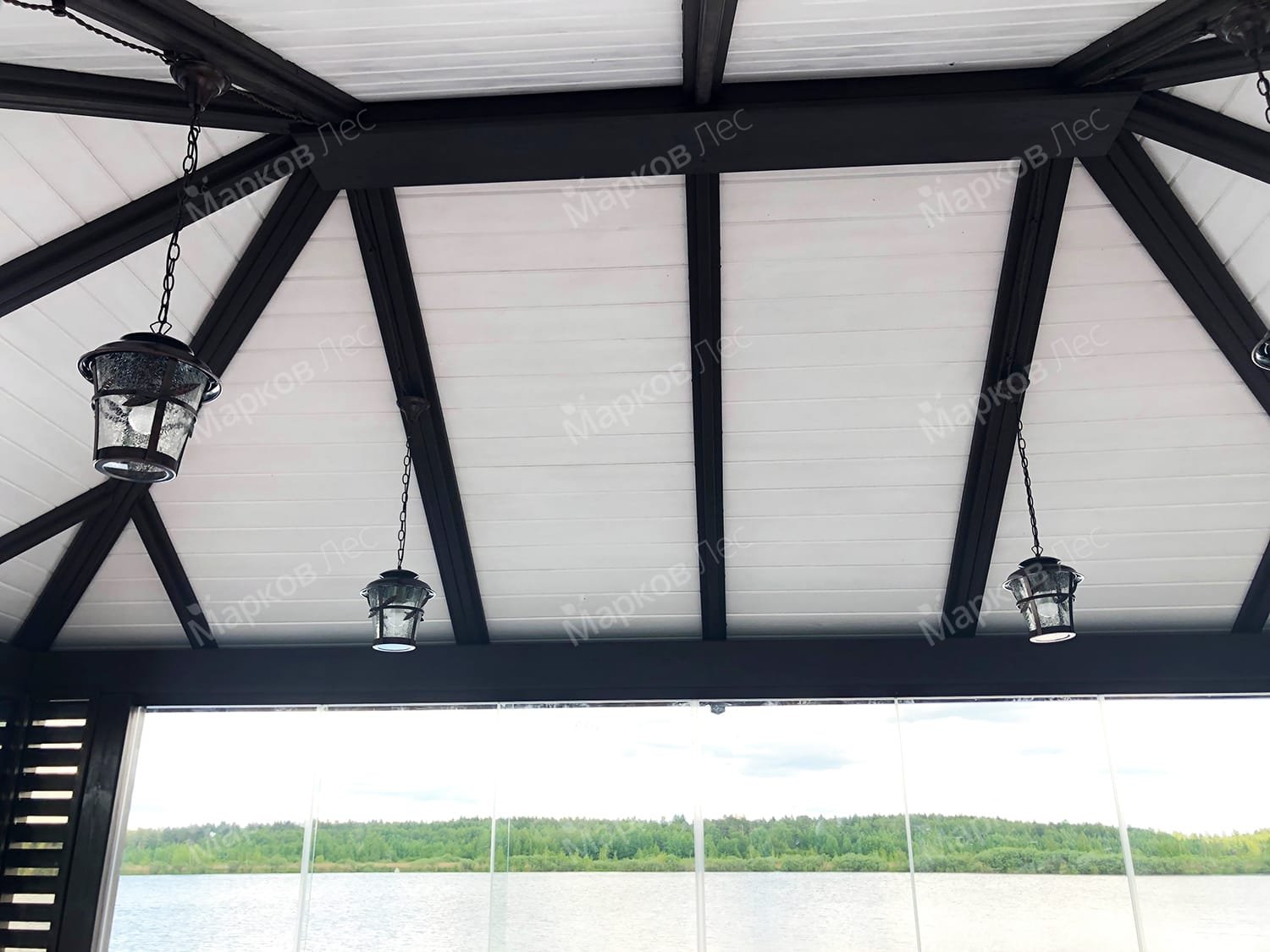 Потолки в беседке из дерева