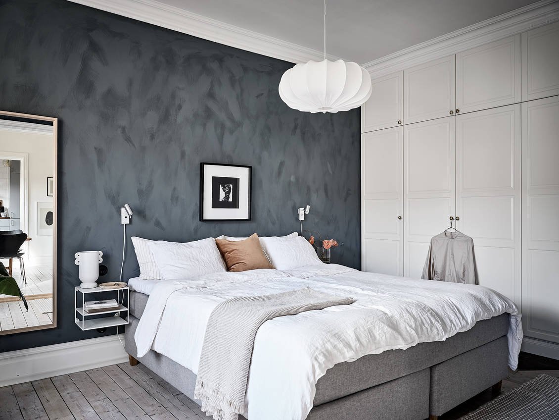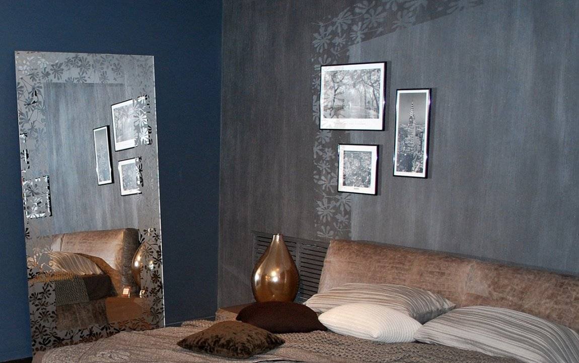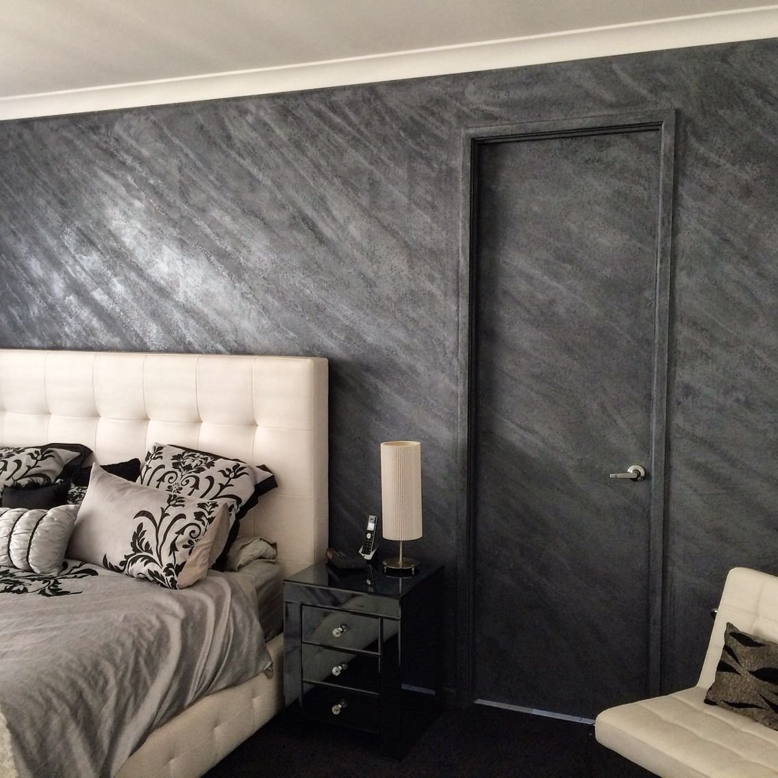 Декоративная штукатурка в спальне серая
