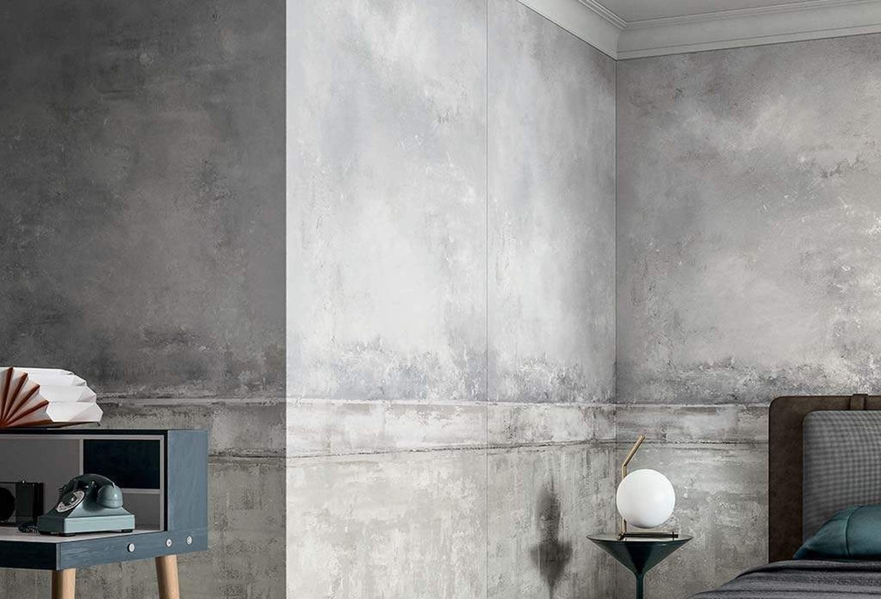 Серая декоративная штукатурка в интерьере