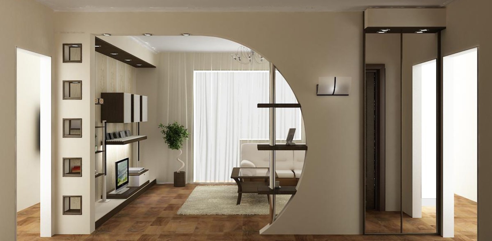 Перегородка в гостиной для зонирования