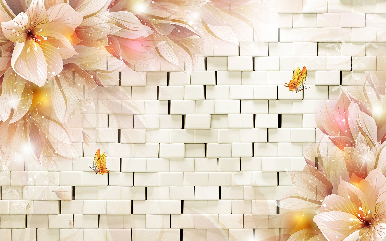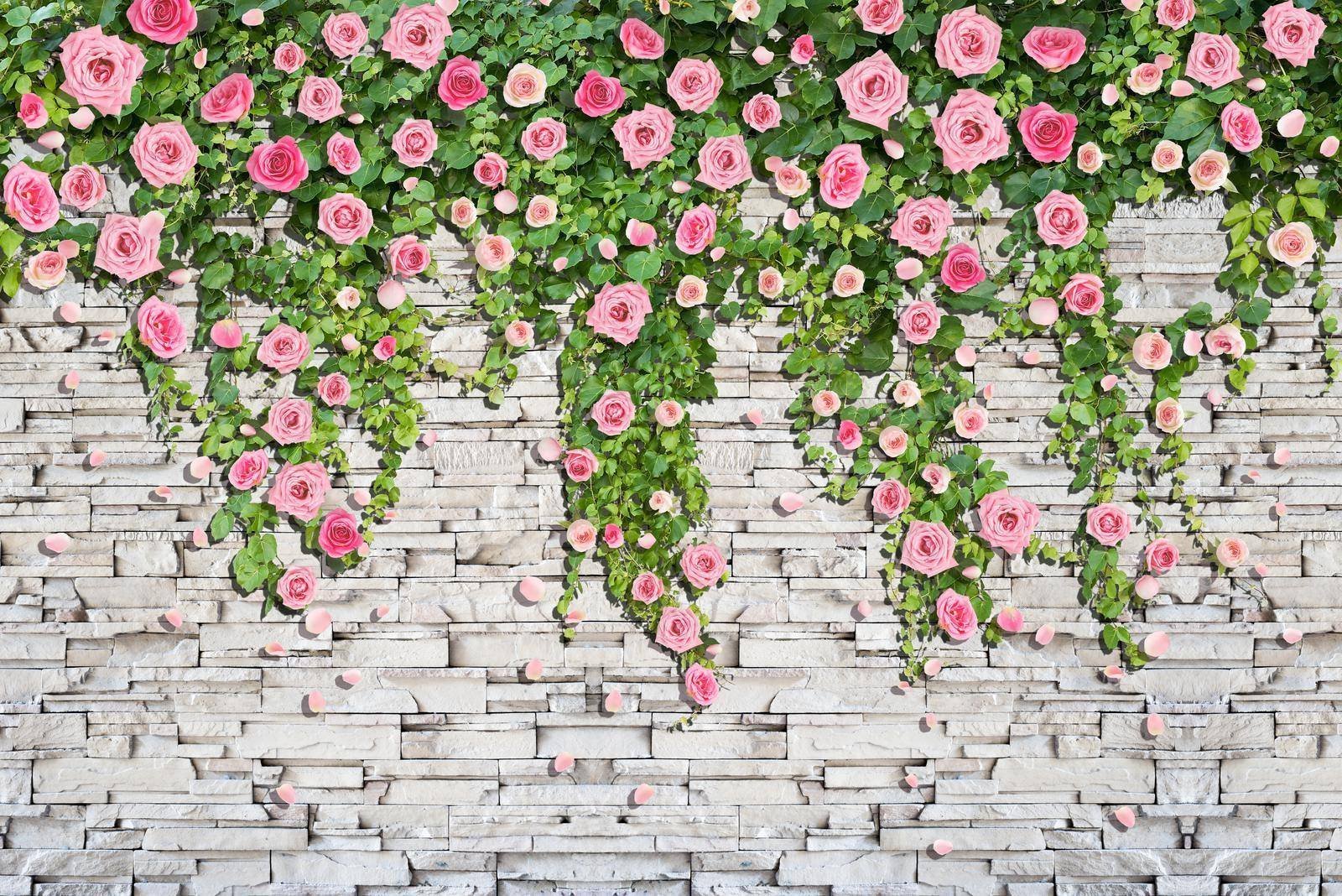 Фотообои цветы и кирпичи