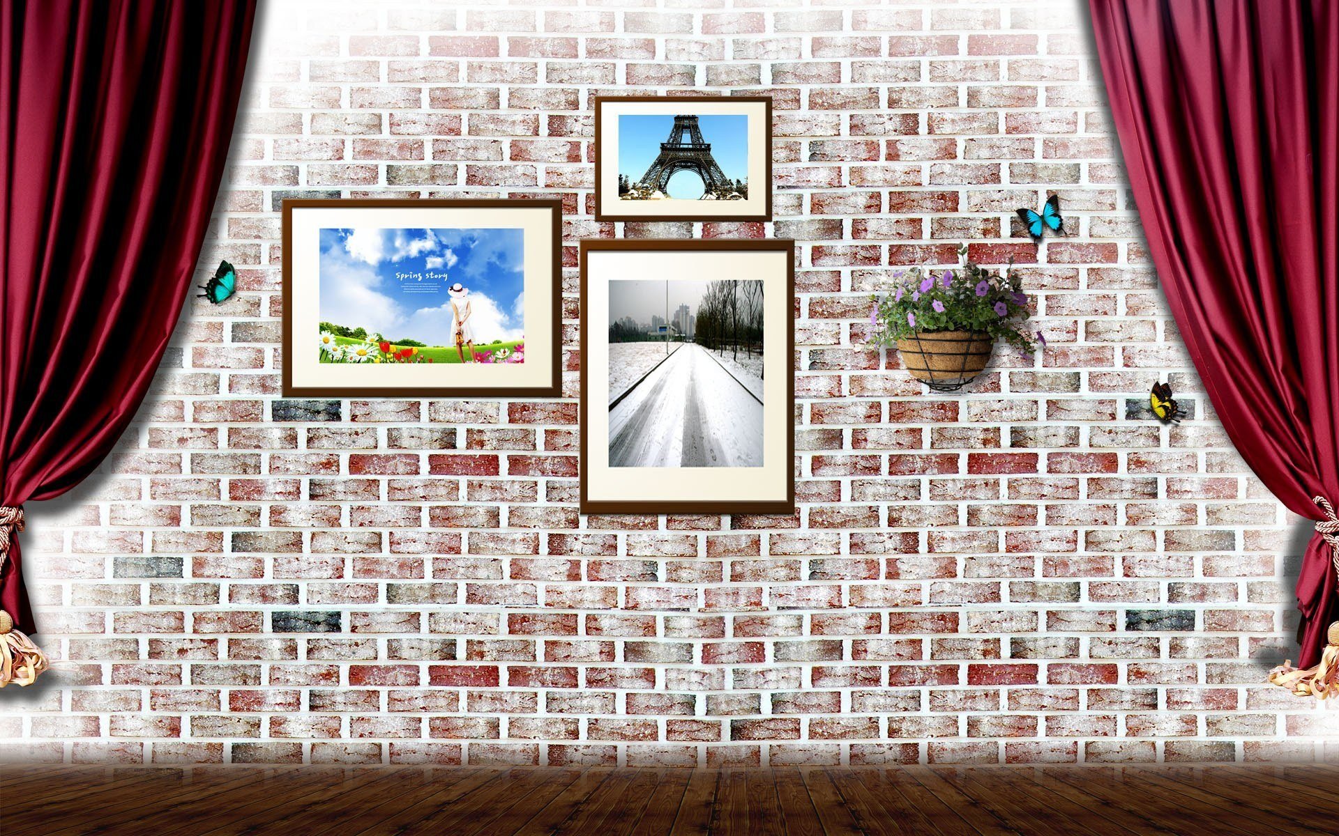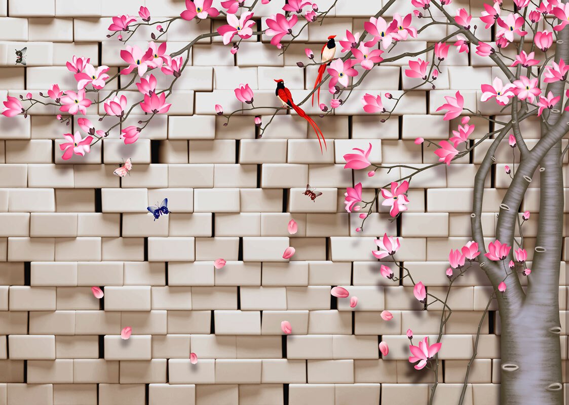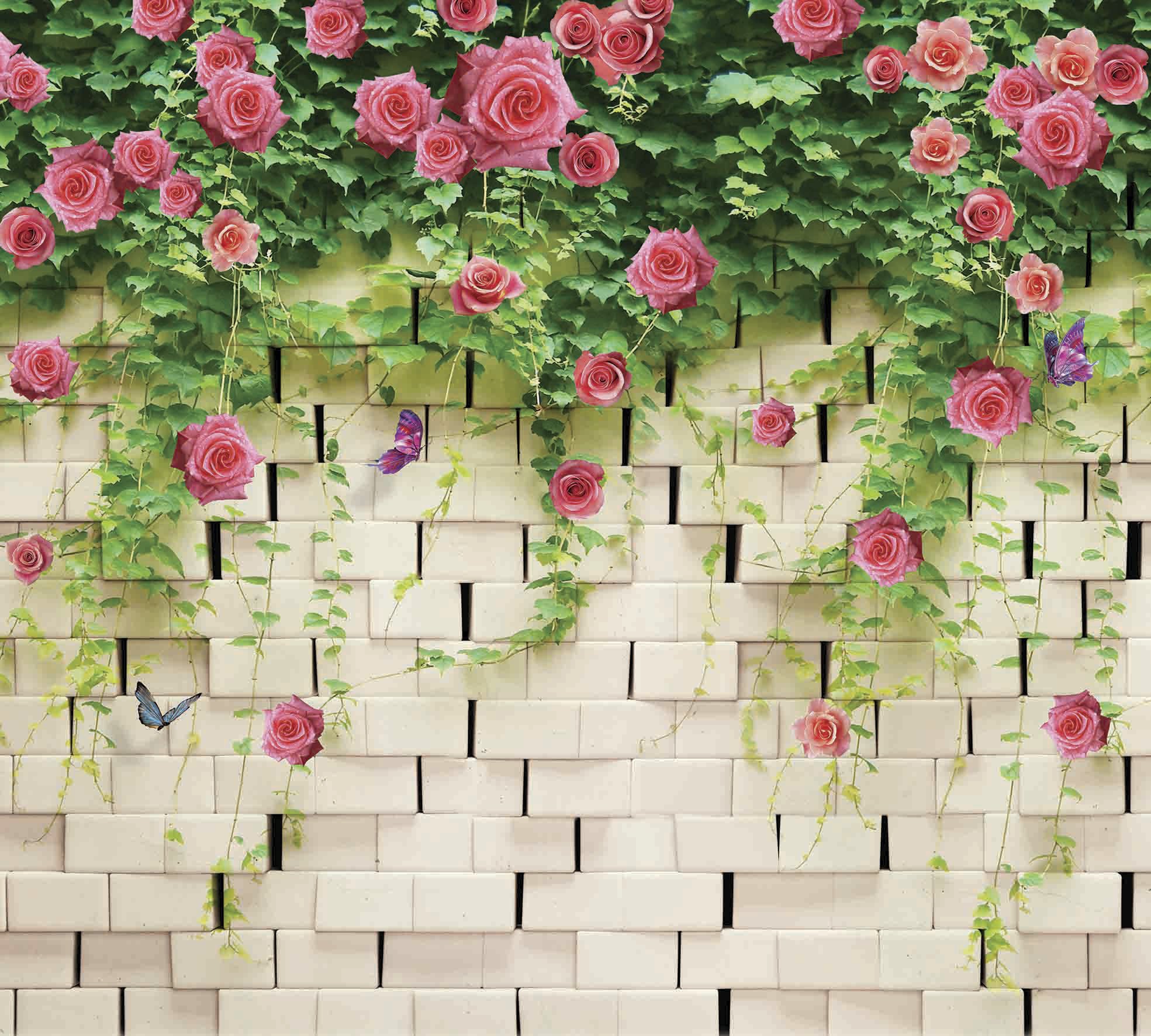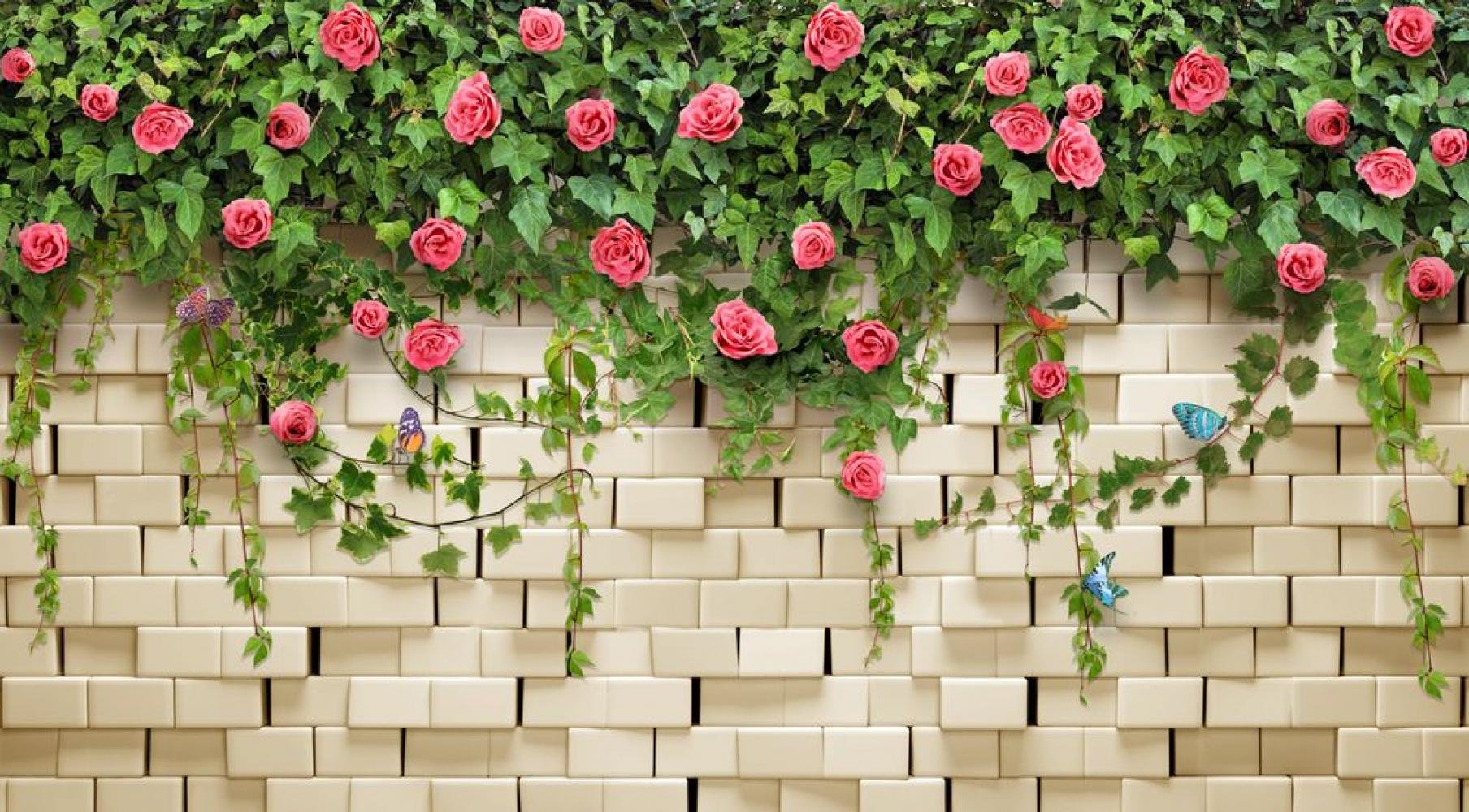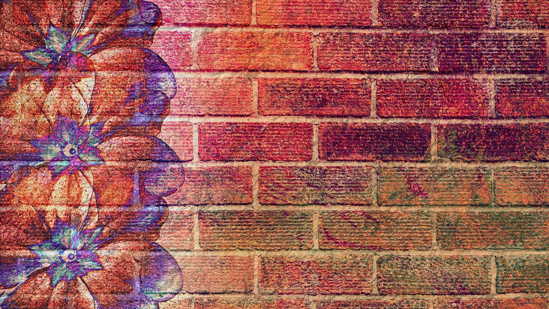 Обои кирпич с цветами
