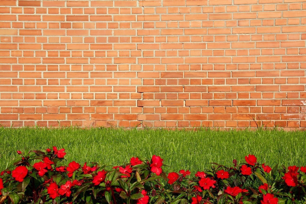 Кирпичная стена с цветами