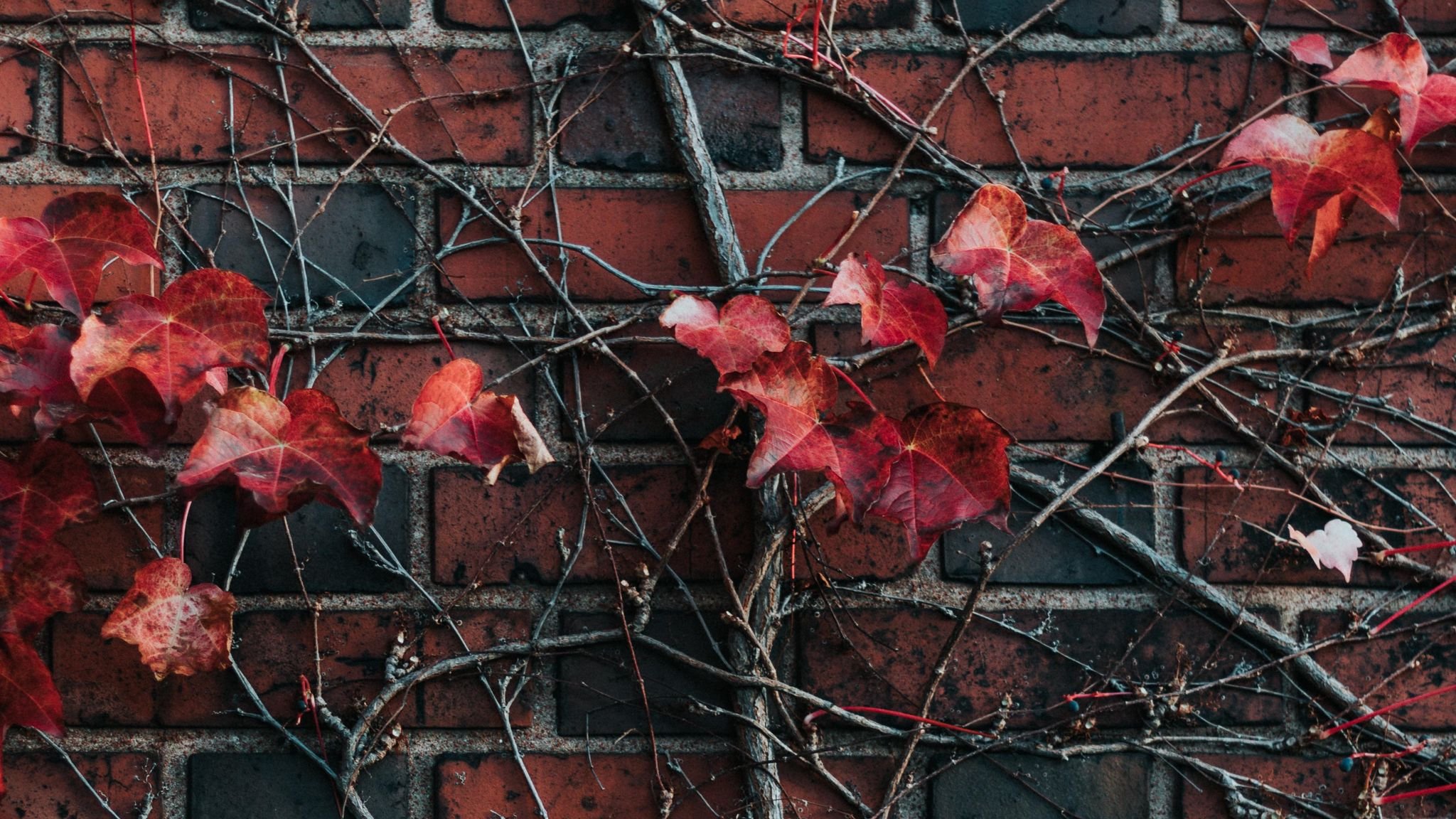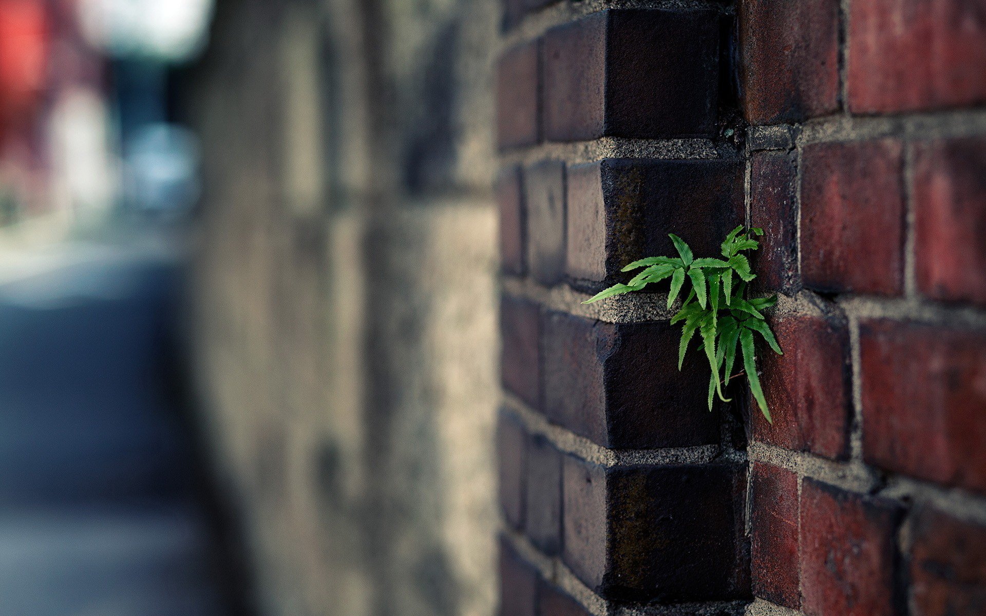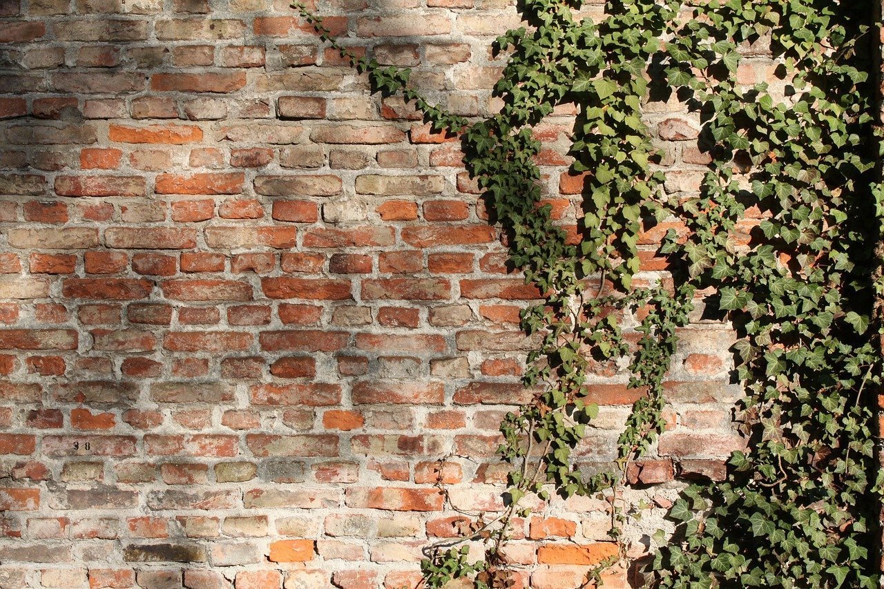 Кирпичная стена с растениями