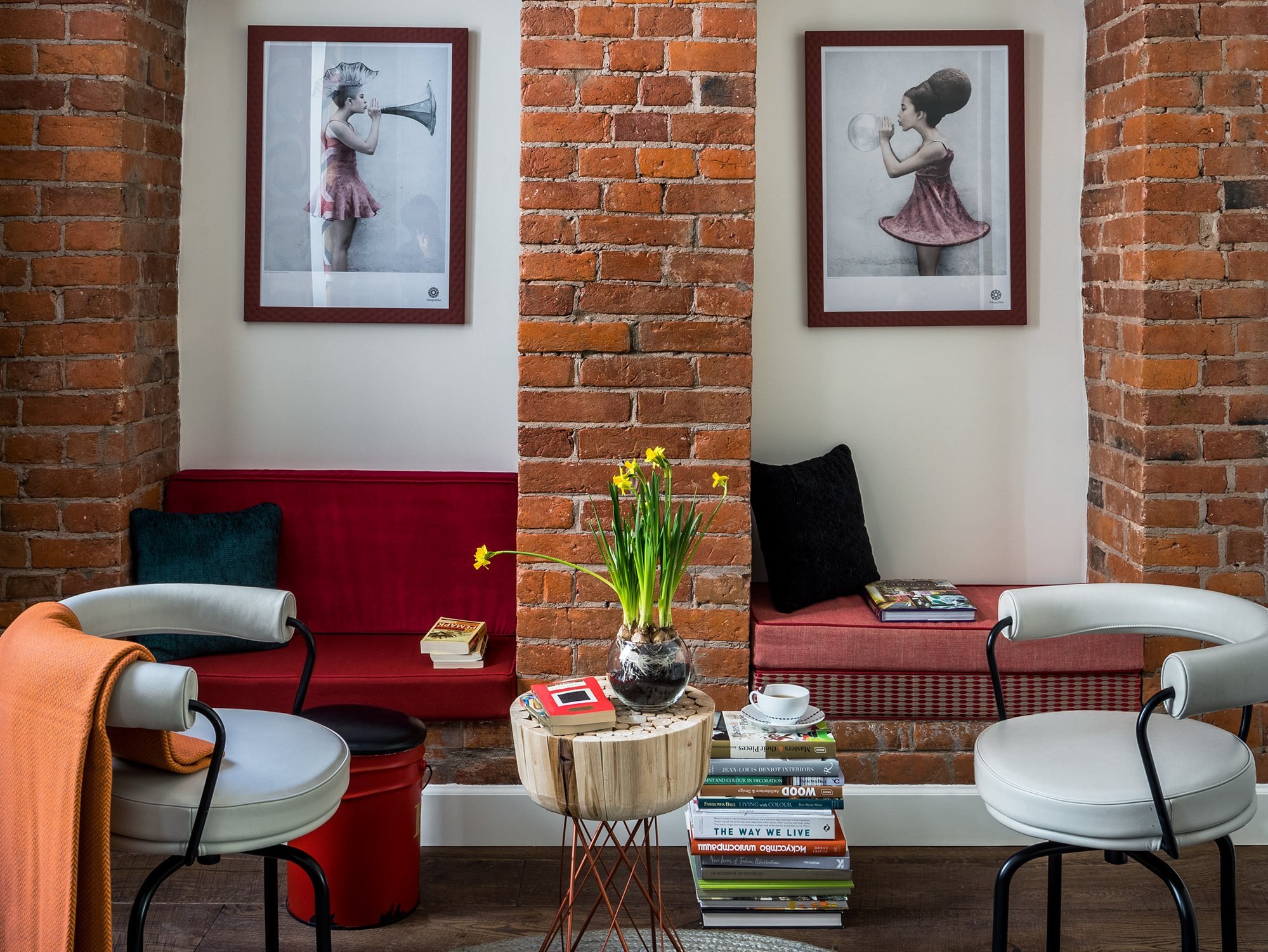 Розовый кирпич в интерьере
