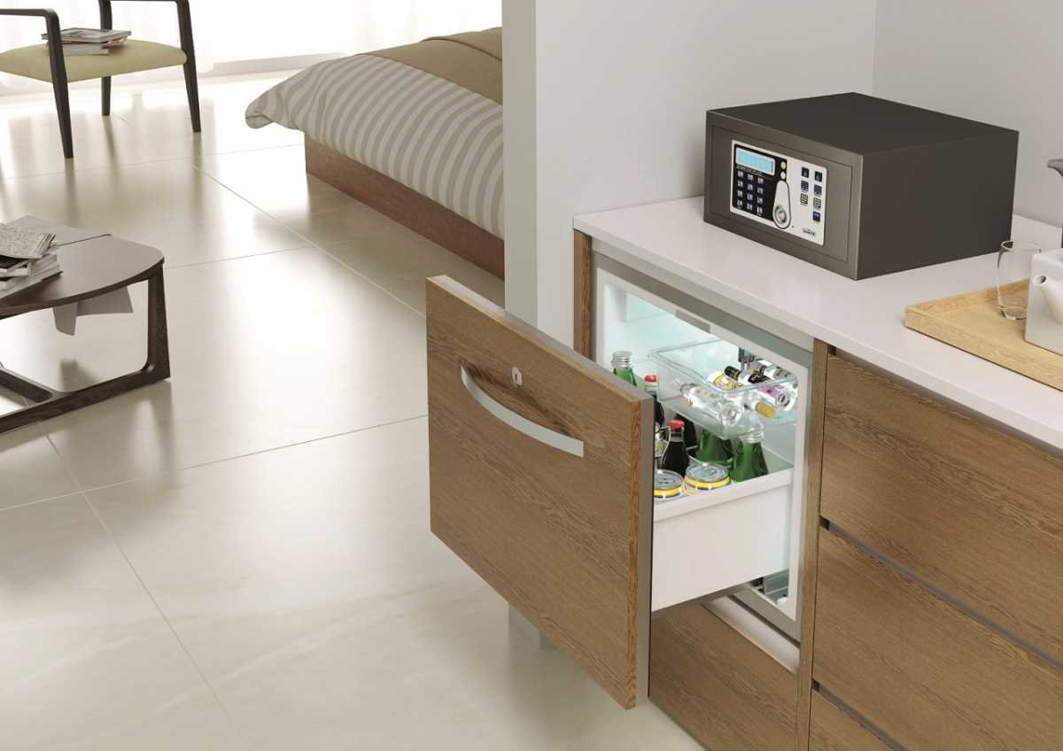 Холодильник встраиваемый под столешницу с выдвижными ящиками