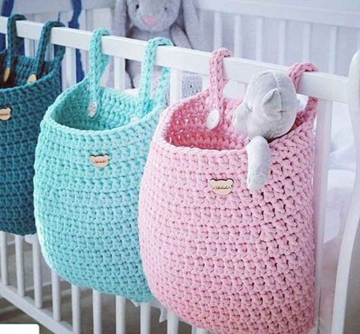 Вязаные корзинки на кроватку
