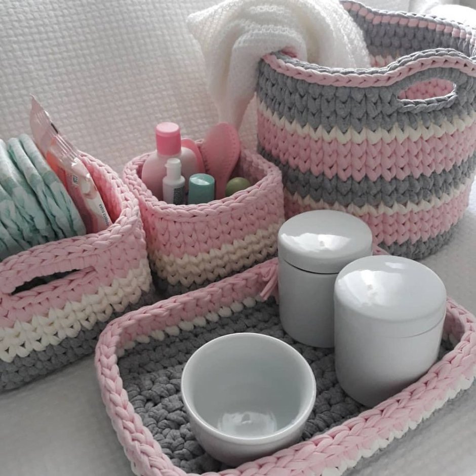 Вязаные корзины и органайзеры