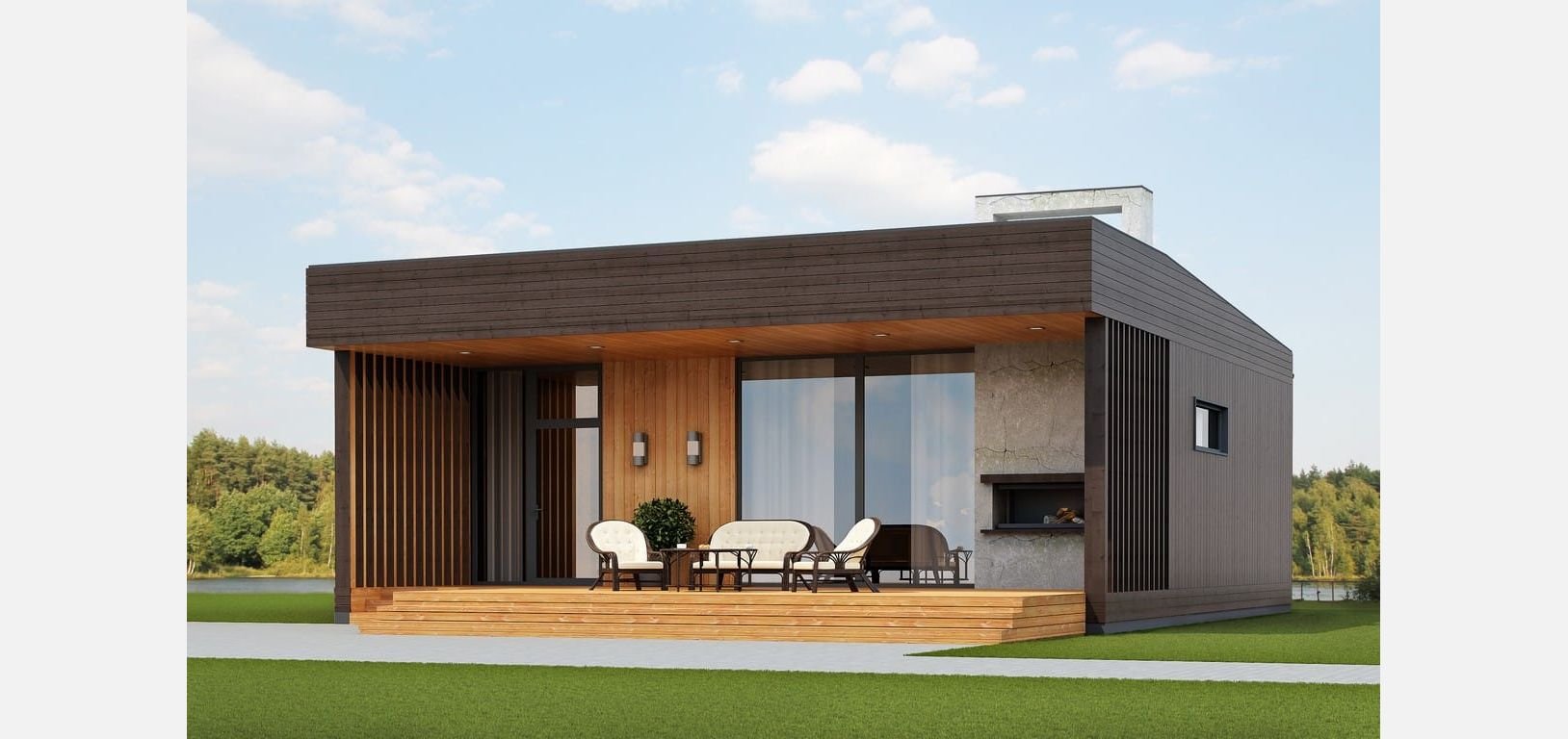 Дом с односкатной крышей Скандинавия