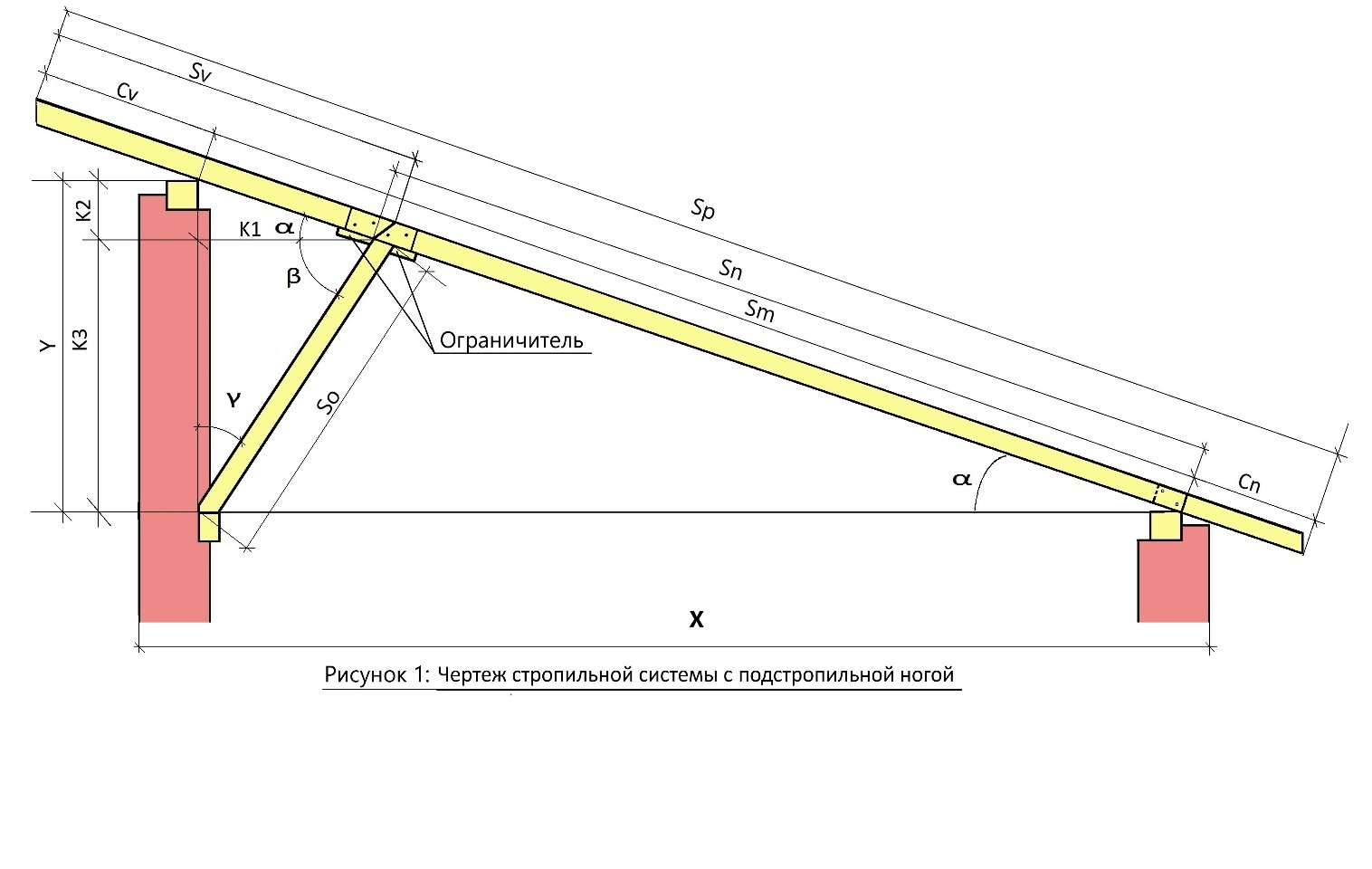 Стропильная конструкция односкатной крыши