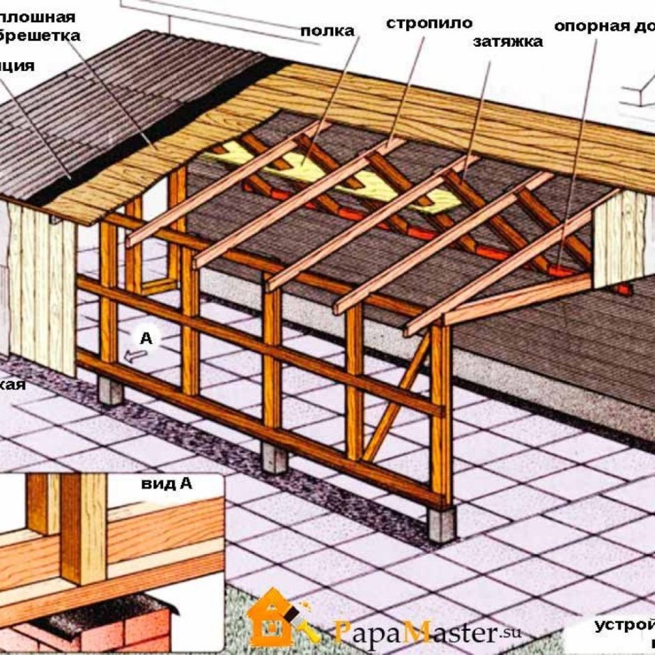 Гараж стропилы односкатной крышей