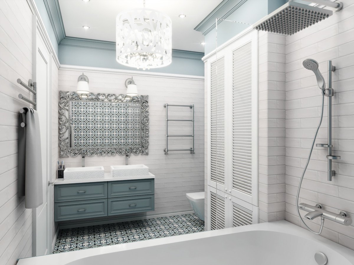 Интерьер ванной в стиле современной классики