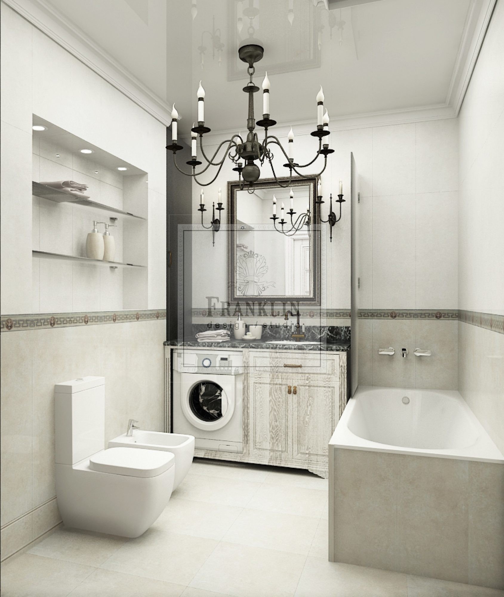 Ванная со стиральной машиной в стиле Неоклассика