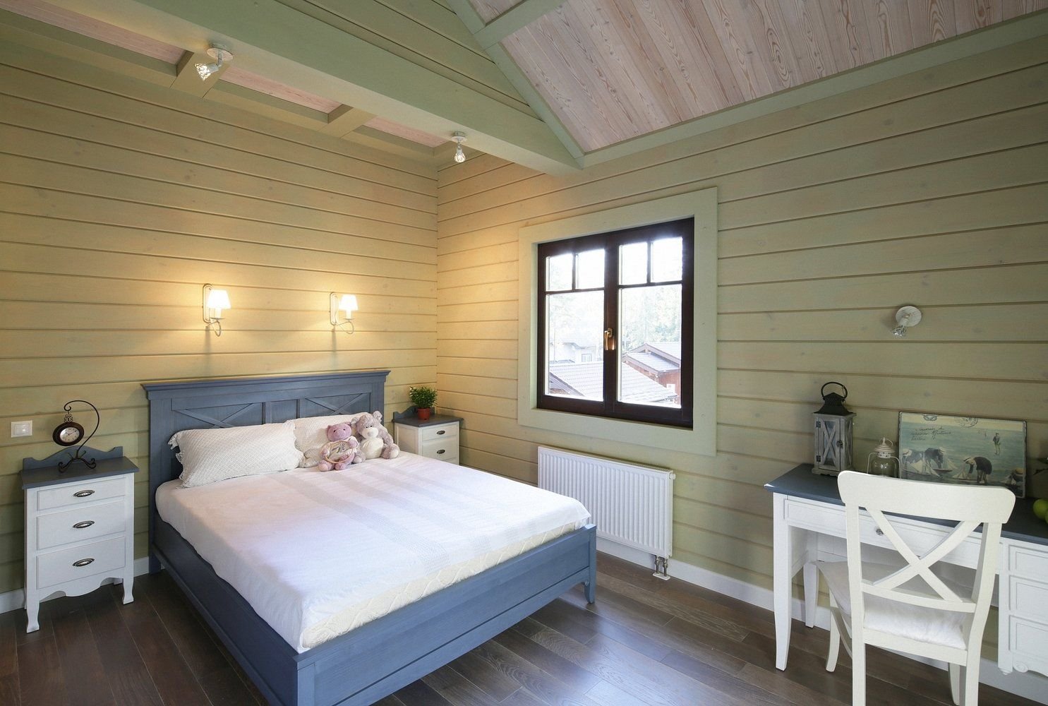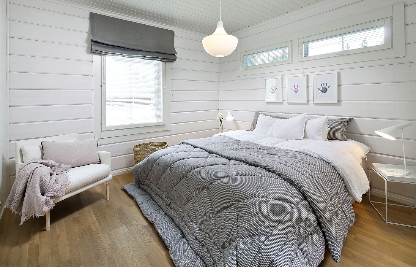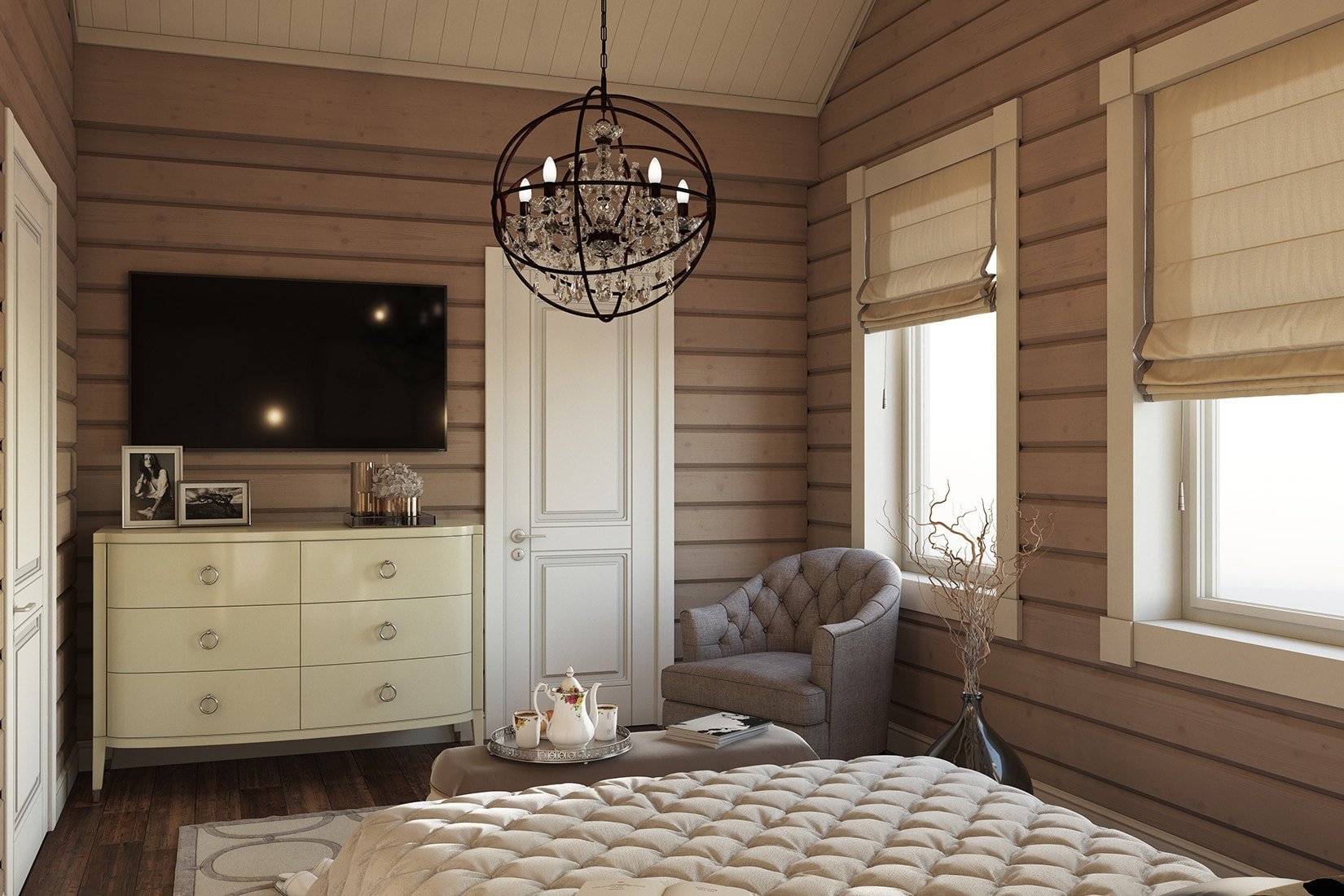 Спальня в скандинавском стиле в деревянном доме