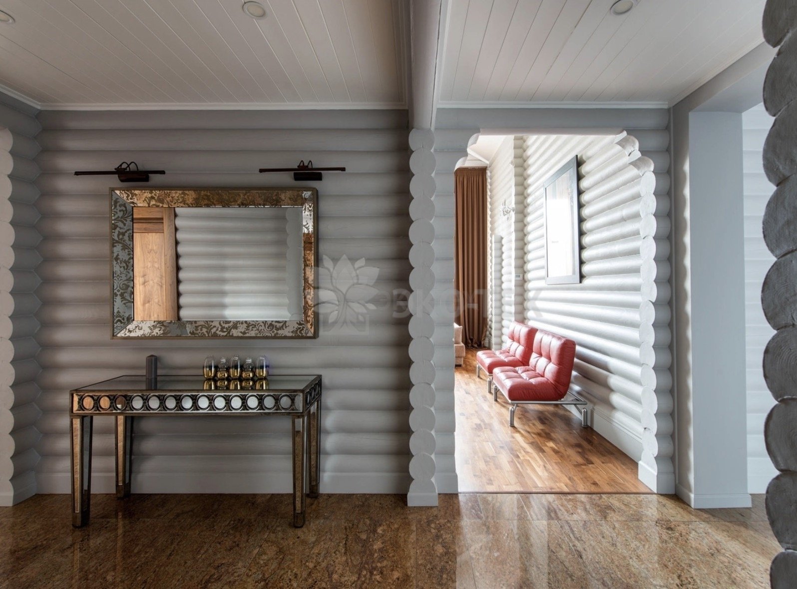 Отделка дома из оцилиндрованного бревна внутри