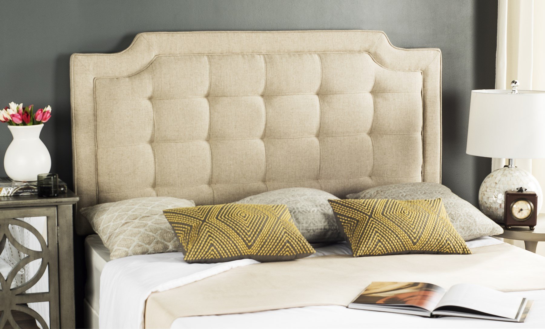 Queen Bed with Safavieh Arabelle Tufted Headboard