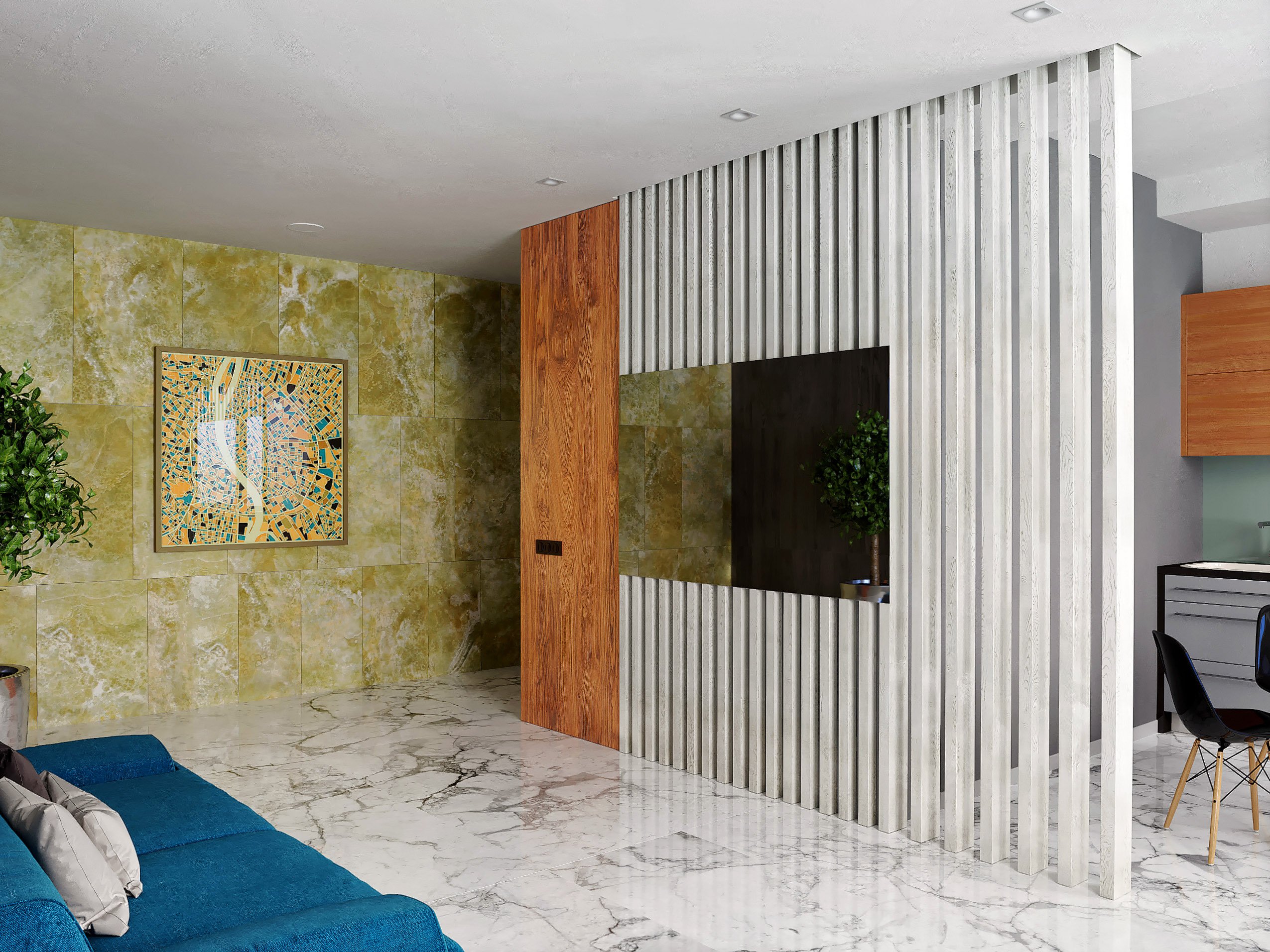 Реечная перегородка для зонирования комнаты