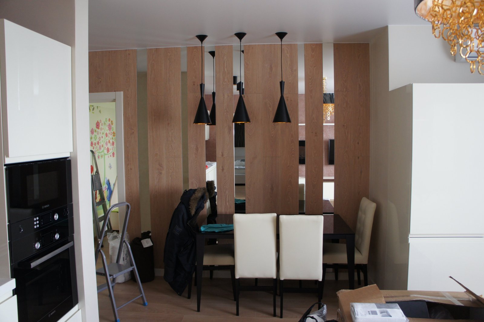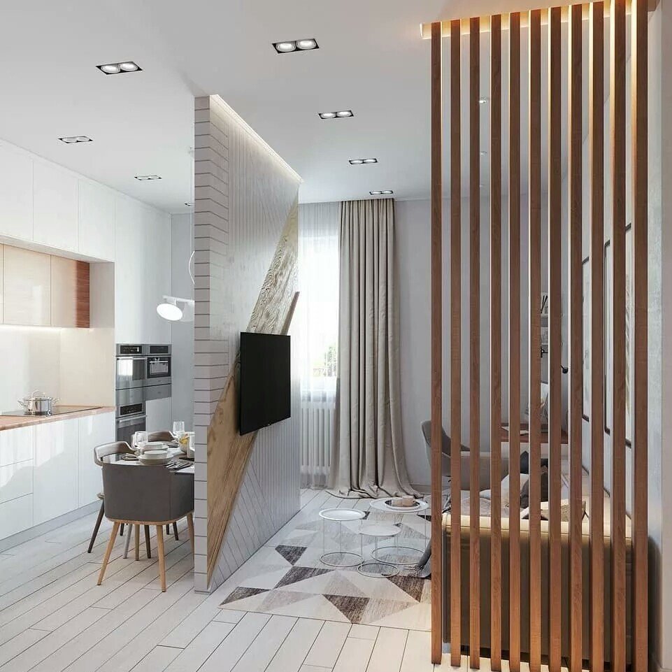 Деревянная перегородка между кухней и гостиной